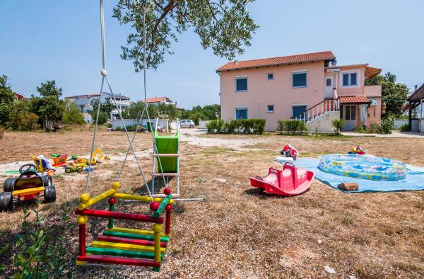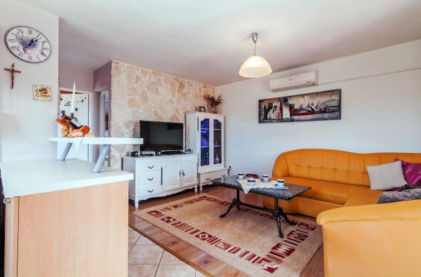 Byt Adriana je nový, komfortní třípokojový byt, 60 m2, pro 4 osoby, jeden pokoj s manželskou postelí, jedna s oddělenými lůžky, prostorný obývací pokoj a přilehlou kuchyní a balkonem. Byt se nachází v prvním patře domu, v klidné a nedotčené části Sukošanu, daleko od pláže v zálivu Golden Luka, obklopen olivovníky, borovice a duby Holm. Nachází se podél pobřežního pásu indentedness, poskytuje široké spektrum zákazníků, od početných úkrytů až po dobře udržovaných plážích s širokým rozsahem. Oblast kolem domu je velmi velký a cesta je dost daleko pro děti na hraní bez přerušení. Dospělí bez mohou trávit svůj volný čas na letní verandě s jídlem nebo vhodným společenský život. Bohatství regionální a místní Turistická nabídka se odráží v kulinářské, kulturních a zábavních prvků prostřednictvím řady akcí v Sukošanu a turistických centů Zadar a Biograd jako návštěvy do okolních národních parků.