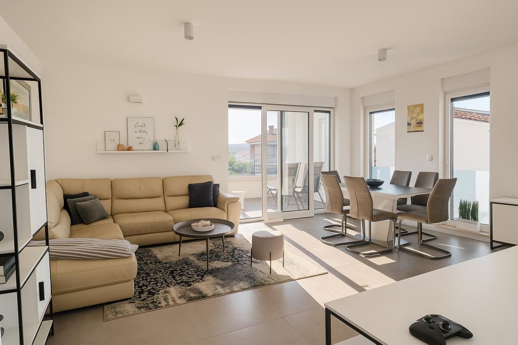 Tento byt je ideálním místem k odpočinku. Prozkoumejte památky a místní zajímavosti Sukošanu – je tu tolik k vidění a dělání! Jako apartmán s vlastním stravováním najdete vše, co potřebujete pro dokonalý pobyt. V kuchyni je lednice, varná deska, trouba, rychlovarná konvice a mrazák. Byt je ideálním místem k odpočinku a nabízí televizi a připojení k internetu. Tento apartmán má 2 ložnice a pohodlně se v něm vyspí 6. V první ložnici najdete manželskou postel King. Druhá ložnice obsahuje 2 samostatné postele. V obývacím pokoji je rozkládací gauč. Je zde jedna koupelna. V koupelně je také pračka. Povlečení a ručníky jsou zahrnuty, aby byl váš pobyt příjemnější.