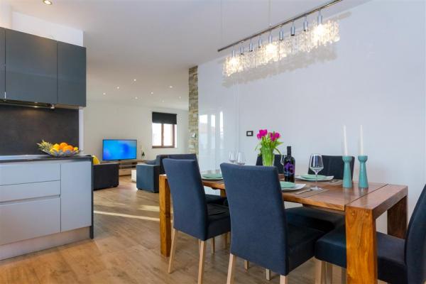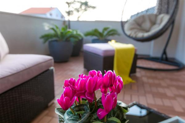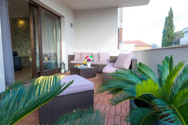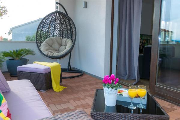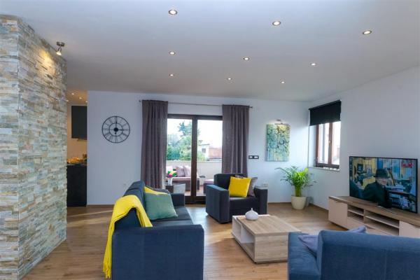 Moderně zařízený byt v patře rodinného domu se nachází v samém centru města. Tato nemovitost se nachází v klidné ulici, pouhých 5 minut chůze od hlavního náměstí a je ideální pro dokonalou rodinnou dovolenou. K dispozici je celé patro budovy, které tvoří prostorný obývací pokoj, dvě ložnice, koupelna, plně vybavená kuchyň, jídelna a krytá terasa. Nabízíme našim hostům bezplatné WiFi připojení k internetu, topení a chlazení, satelitní televizi, vysoušeč vlasů, ložní prádlo, ručníky. Příjezd s domácím zvířetem je možný po předchozí dohodě. Soukromé parkoviště ve dvoře domu.