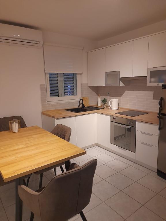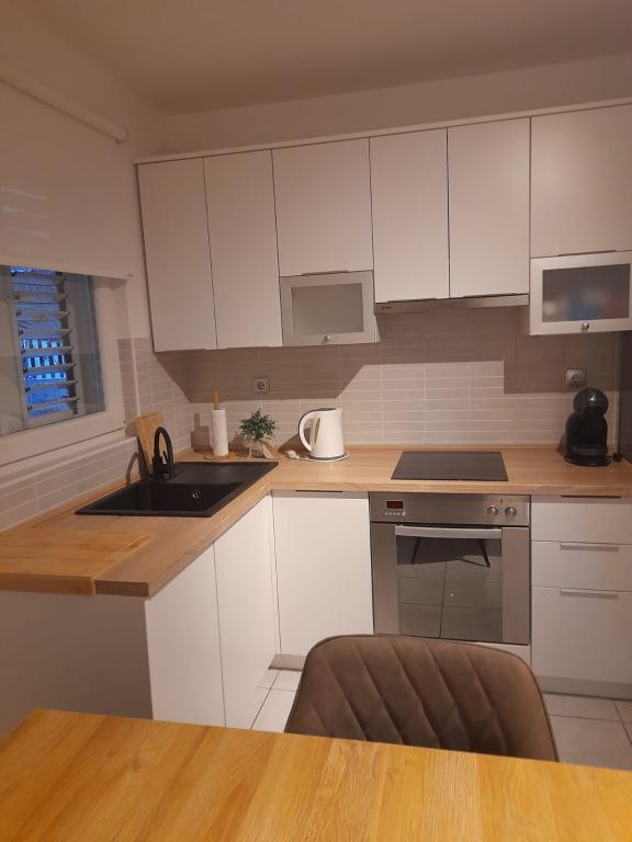 Byt čistý a dobře vybavený. Majitel je velmi milý a ochotný, o zařízení se stará každý den. 3 minuty chůze na pláž. Byt daleko od shonu a centra. Vzdálenost od rušné silnice je dostatečně velká že neslyšíte hluk aut. Blízko obchodu a pekárny. U pláže je bar, restaurace a půjčovna šlapadel. Do centra pouze autem. Pěšky trochu daleko a jen hlavní silnice, protože u moře jsou místa se soukromým oploceným územím