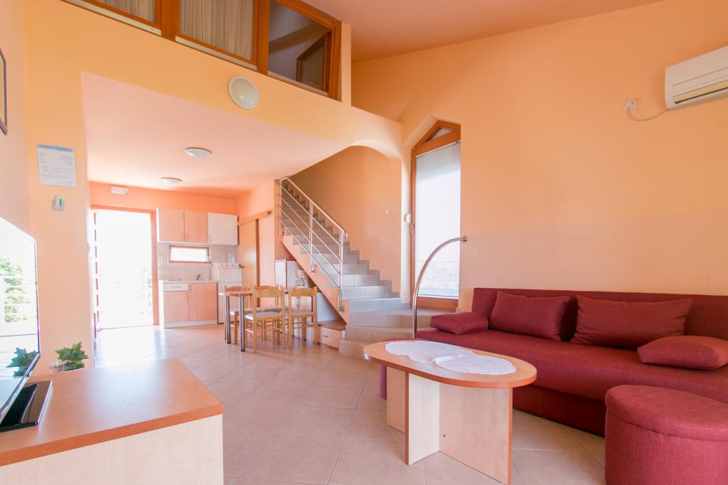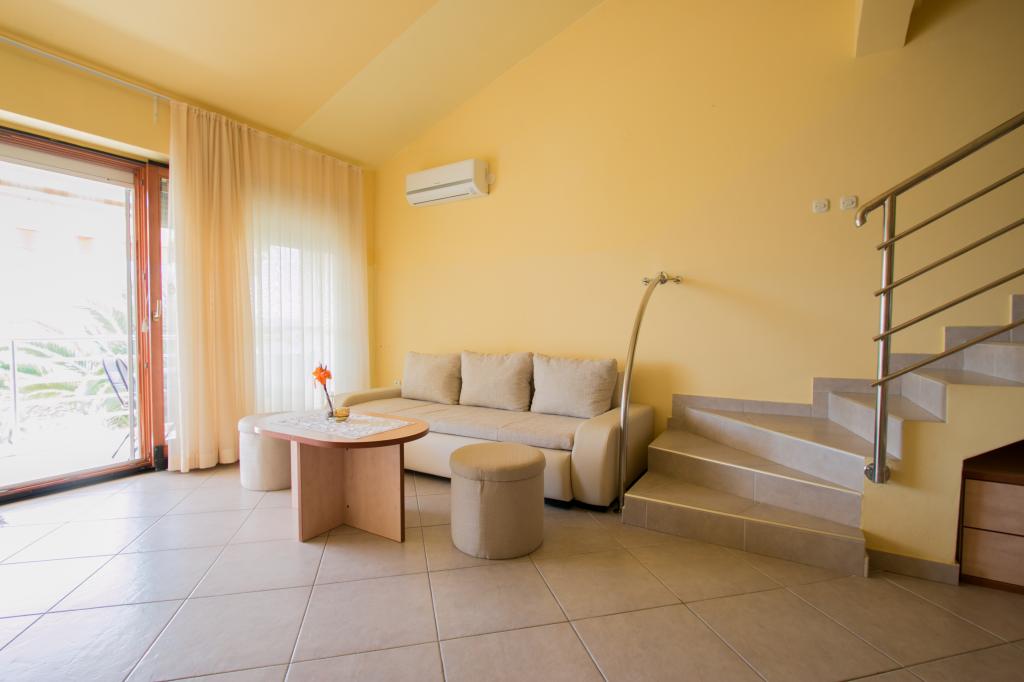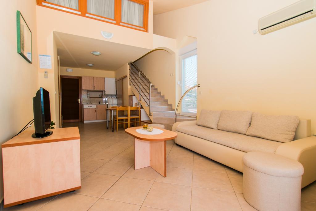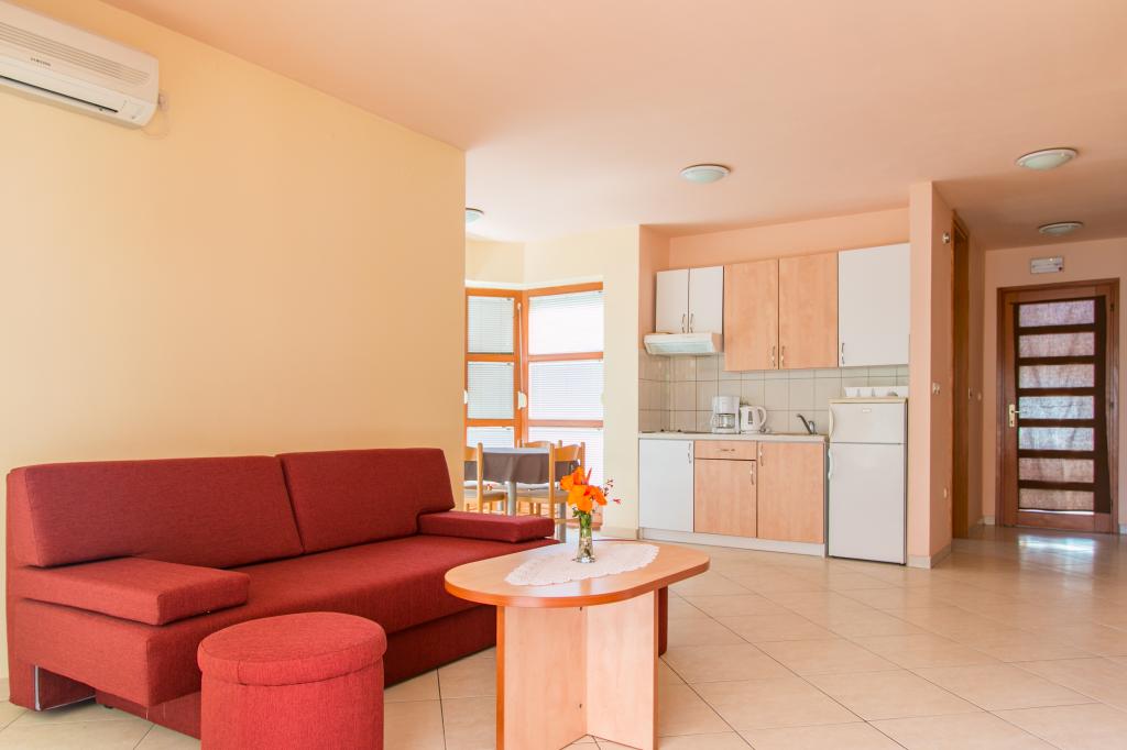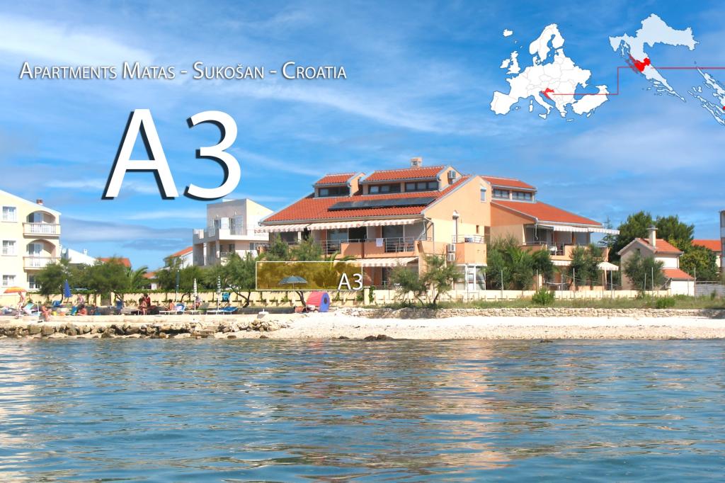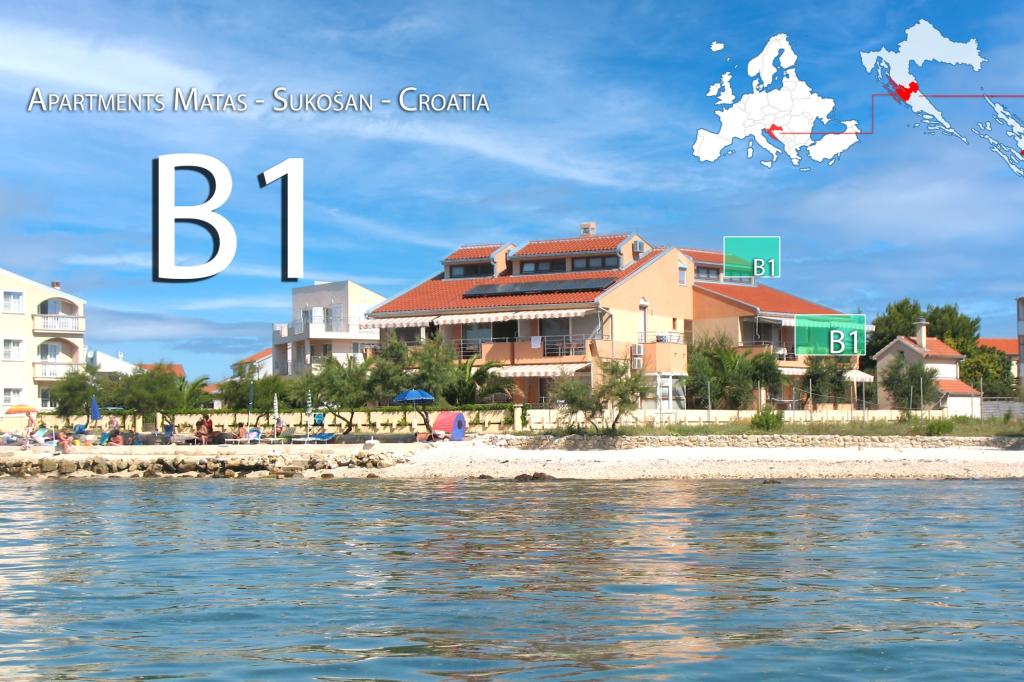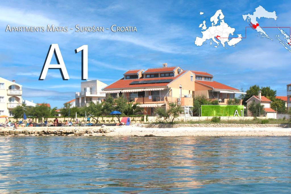 Apartmány Matas A1 a A3 (pro 4 osoby) a A2 (pro 2 osoby) se nacházejí v přízemí. Apartmány Matas B1, B2, B3, B4, B5 (pro 4 osoby) se nacházejí v prvním patře, mezonetového typu. Prostorný obývací pokoj s kuchyní a jídelním koutem, stejně jako velké dveře na terasu, poskytují dokonalé místo k odpočinku. V apartmánech najdete vše, co potřebujete pro vaši dovolenou. Apartmány jsou plně klimatizované a vybavené TV se satelitním příjmem, bezdrátovým internetem, sporákem, lednicí a nádobím. Apartmány se skládají z ložnice (2 osoby), obývacího pokoje (pohovka pro 2 osoby), kuchyně, koupelny a prostorné terasy s krásným výhledem na zadarské souostroví. Apartmán A2 je studio pro 2 osoby. V případě potřeby máme i postýlku pro děti do 2 let.