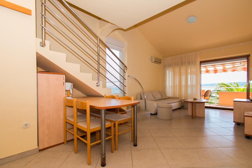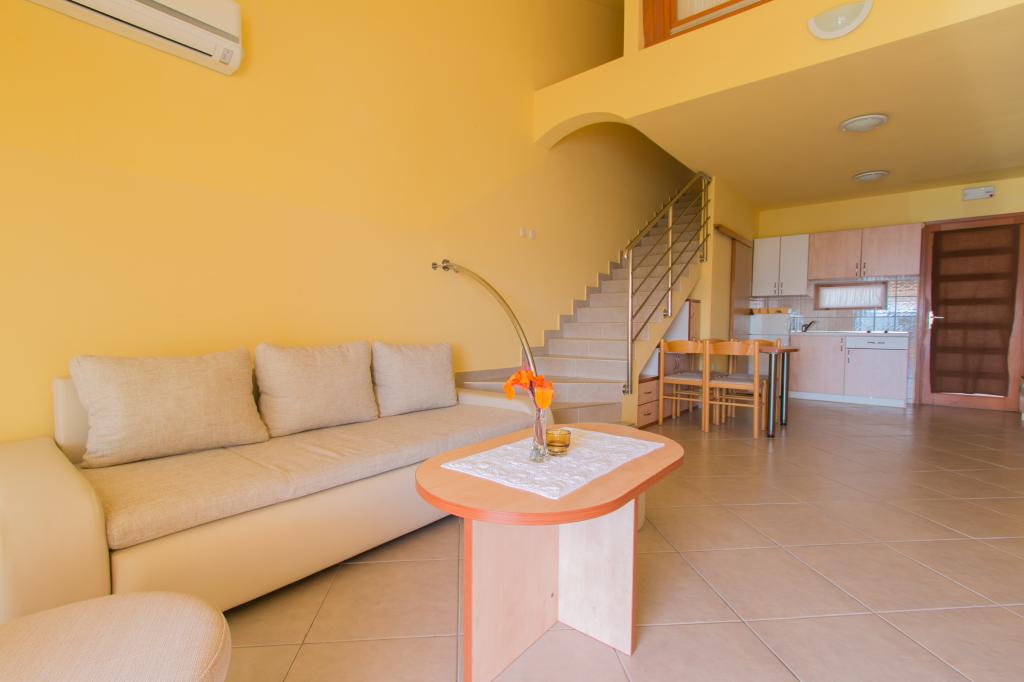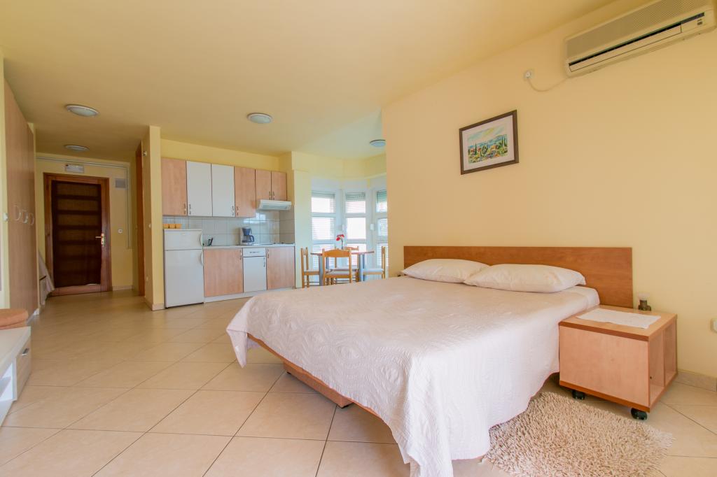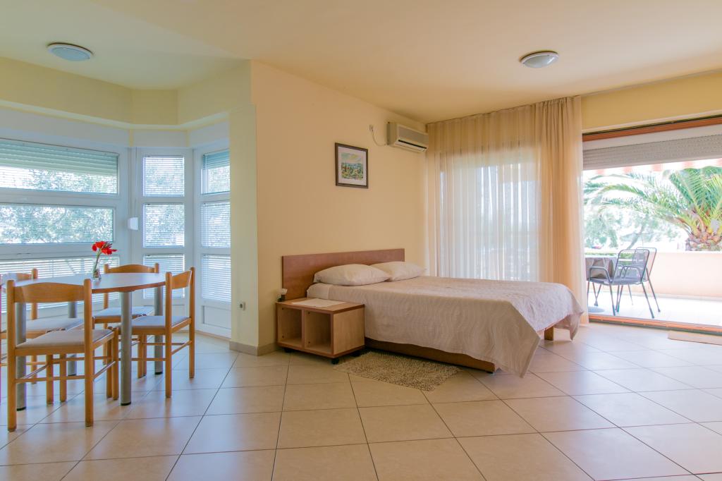 Apartmány Matas jsou jen pár metrů od pláže! Soukromá pláž je klidná, dobře udržovaná a má oblázky. Písečná pláž je vzdálena cca 500 metrů. Všechny apartmány mají jednu ložnici (studio má pouze obývací pokoj), obývací pokoj, koupelnu, kuchyň, terasu nebo balkon a jsou vhodné pro max. 4 osoby. Všechny byty mají rozlohu 64 m2, dva pokoje (ložnice a obývací pokoj / ložnice), kromě Ap. A2 (32 m2, max. 2 osoby - ložnice / obývací pokoj) jsou vybaveny klimatizací, satelitní TV, Wi-Fi a kávovarem. V domě je také prádelna s pračkou. V zahradě u pláže je také zahradní sprcha a gril. Apartmány jsou plně vybaveny příbory, talíři, povlečením a ručníky, takže si s sebou nemusíte nic vozit.