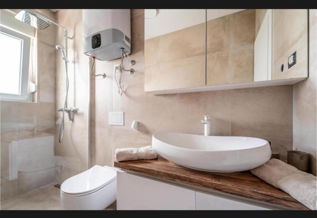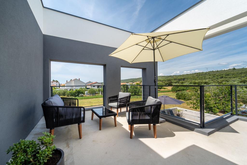 Tento krásný dům k pronájmu se nachází v klidném a malebném prostředí Sukošanu, ideální pro rodiny a páry hledající dovolenou. Apartmán nabízí prostorné a světlé pokoje, moderně zařízený obývací pokoj, plně vybavenou kuchyň a pohodlný balkon a velkou terasu s výhledem na přírodu. Kromě toho nabízíme vyhřívaný bazén pro naše hosty, kteří přijedou v sezóně 2026. Chceme našim milým hostům poskytnout ještě více relaxace - proto s radostí oznamujeme, že nyní nabízíme masážní vanu (jacuzzi)! Nedaleko se nacházejí pláže, restaurace a obchody, díky čemuž je toto místo ideální pro objevování místních atrakcí. K dispozici je veškeré potřebné vybavení pro příjemný pobyt, včetně Wi-Fi, klimatizace a parkování. Přijďte a užijte si nezapomenutelnou dovolenou!