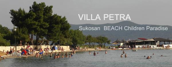 Apartmány Petra se nacházejí v první řadě u moře na oblíbené pláži Dětský ráj. Apartmány jsou v kategorii 4 a 3 hvězdičky, vybavené, prostorné se spoustou prosklených ploch, které v bytech vytvářejí mimořádně příjemnou atmosféru. Ze zahrady, kde mají hosté k dispozici stolní tenis, gril, zahradní nábytek a lehátka (v příjemném stínu), je přímý výstup na pláž. Každý apartmán má samostatné parkovací místo. V bezprostřední blízkosti jsou restaurace, taverny, pizzerie, trhy, stánky s ovocem a zeleninou. Dětská hřiště, zábavní park a dětské dílny, které jsou 5 minut chůze od apartmánu, potěší všechny nejmenší, kteří navštíví Sukošan. Ty starší potěší rybářské slavnosti, tradiční akce, výborné jídlo a blízkost města Zadar a národních parků Kornati, Krka, Plitvice a Paklenica.