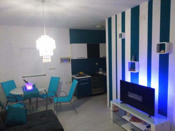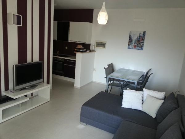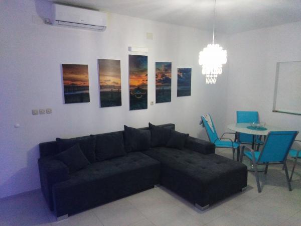 Byty k pronájmu jsou luxusní a nově zařízené a klimatizované a vybavené připojením wi-fi internet. Velikost každého bytu je 55 m2, terasaom 30m2. Byt se skládá z jedné ložnice, obývacího pokoje, koupelny a kuchyně, a je ideální pro 4 osoby, páry s dětmi i bez dětí. Kryté parkoviště pro vozidla (garáž) se mohou ubytovat tři vozidla. Nachází se v blízkosti několika krásnými plážemi, přírodní závodní a cyklistických tras, a města, ale v klidné oblasti a přístavu. Byt se nachází v blízkosti přístavu, který je oblíbeným cílem vodáků. V blízkosti se nachází několik skrytých zátok s krásnými plážemi, kde si můžete v klidu vychutnat krásu křišťálově čisté moře.