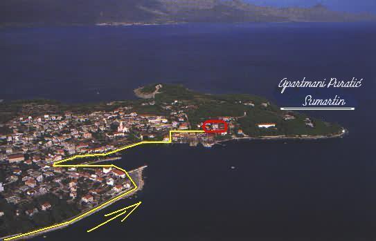 Puratic Byt se nachází v klidné obci na východním pobřeží ostrova. Nachází se pouhých 30 metrů od moře, je ideálním místem pro klidnou rodinnou dovolenou. Jeho rozloha je 100 m2 se třemi ložnicemi, koupelnou, kuchyní a jídelnou, a 150m2 terasa s venkovní sprchou. K dispozici jsou pece na dřevo a gril. V suterénu domu se nachází herna v 50m2 s stolní tenis, šipky, stolní fotbal. . .