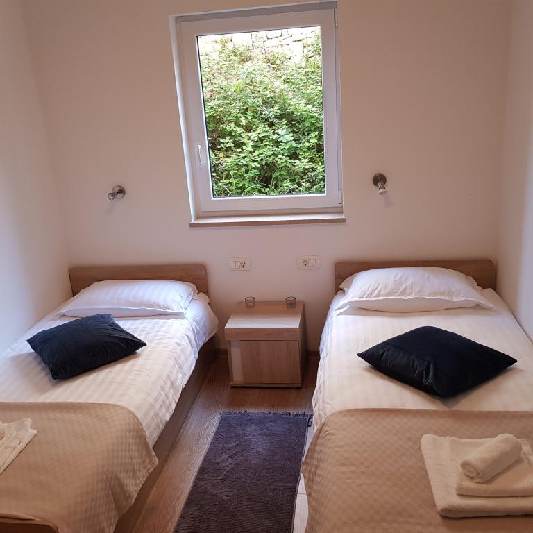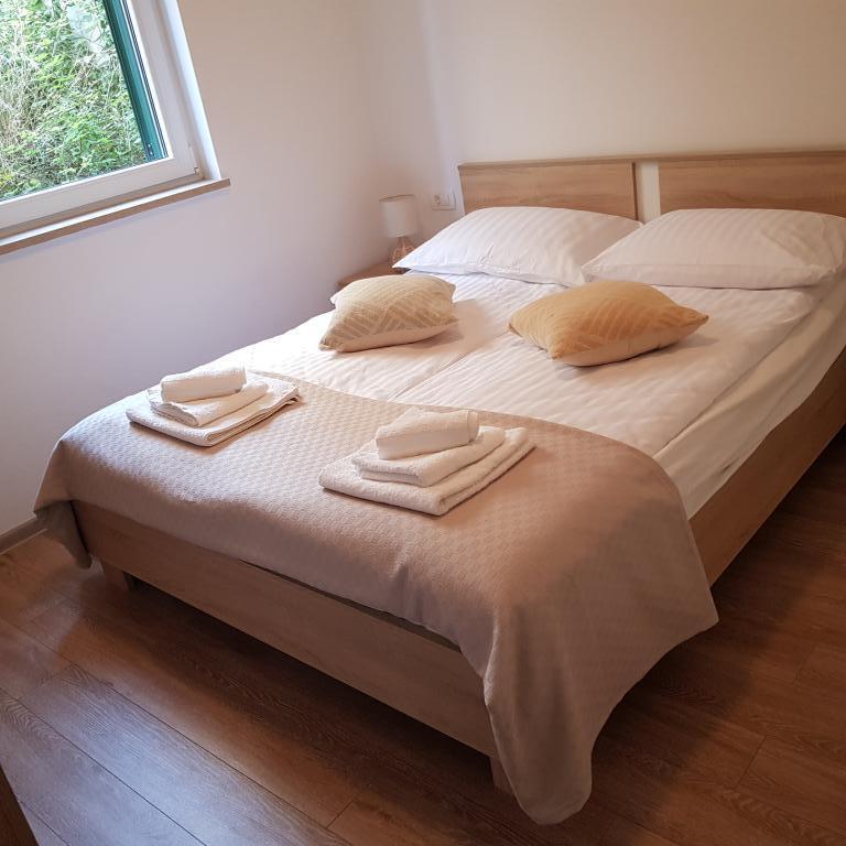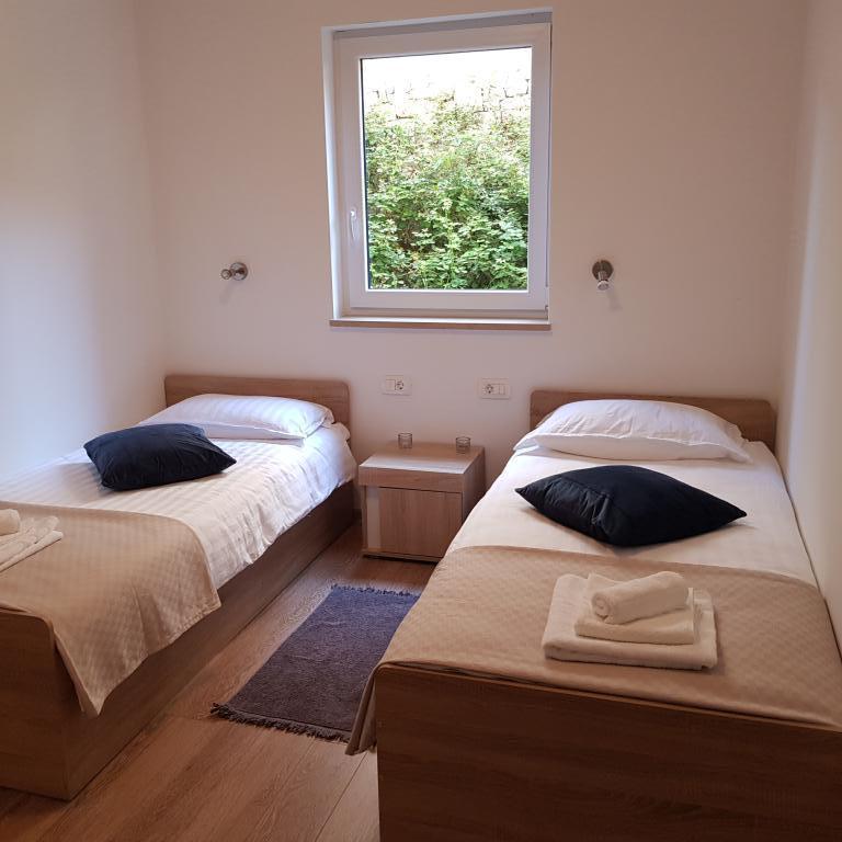 'Apartment Katerina' se nachází v Supetaru, jen pár minut chůze od moře a atraktivních místních pláží. Dvoupokojový apartmán pro 6 osob (4 + 2) je součástí městské vily s balkonem (výhled do zahrady) a parkováním zdarma. K dispozici je plně vybavená kuchyň, jídelna a obývací pokoj, dvě ložnice (jedna s manželskou postelí, druhá se dvěma samostatnými lůžky), obývací pokoj (s rozkládací pohovkou) a koupelna se sprchovým koutem a pračkou. Apartmán je klimatizovaný a má bezplatné Wi-Fi a TV s plochou obrazovkou. Na zahradě je gril, přístupný všem nájemcům objektu. Supetar je malé městečko na severní straně ostrova, s dobrým spojením trajektem do Splitu. Je to skvělý výchozí bod pro objevování ostrova.