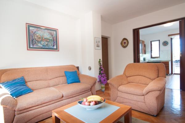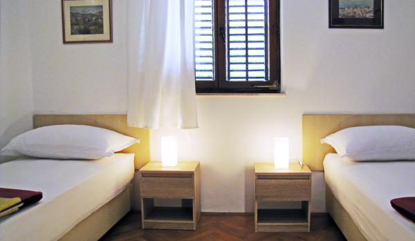 Půjčit čtyři jednotky v rodinném domě pozicioniranoj v jihovýchodní části starého centra města, v klidné a žádané lokalitě. Flexibilní rozvrh a zařízení umožňují použití kombinace jednotek. Všechny apartmány a pokoje mají terasu nebo balkon s výhledem na město a moře, který je vybaven klimatizací, satelitní TV a mají přístup k Wi-Fi. K dispozici je také parkovací stání a dvorek grilování. Pračka a žehlička se žehlicím prknem jsou k dispozici na vyžádání. Do centra města a pláže jsou vzdáleny 5-10 minut pěšky a obchody 3 minuty. V nedalekém borového lesa je rekreační oblast vybavena různými přístroji na cvičení.