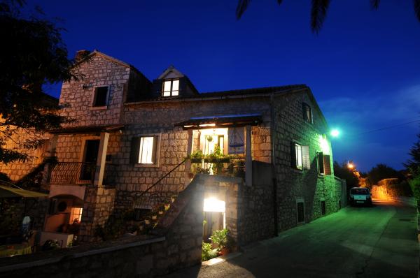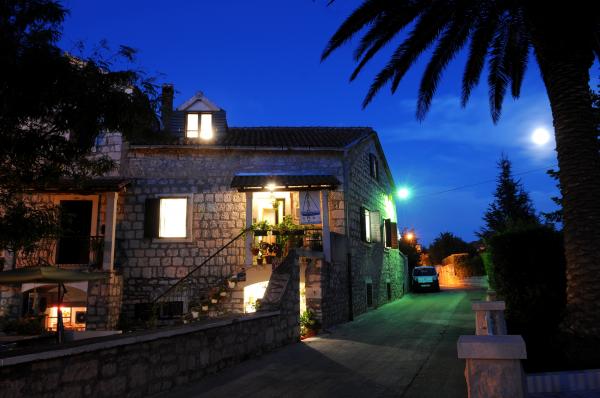 Naše apartmány se nacházejí v tradičním kamenném domě v centru města Supetar. Ve dvoře před domem je soukromé parkoviště pro auta našich hostů. Na terase před domem mají hosté možnost posedět ve stínu se sklenicí nápoje a výhledem na moře. Hosté mají také možnost připravit jídlo na grilu na terase před domem. Pláž se nachází přímo před domem, 20 metrů od hotelu. Nedaleko se nachází kavárna, restaurace, pošta, kiosek a další různé nabídky. Dům se nachází na ideálním místě pro hosty, kteří chtějí pohodlí, když jsou na dovolené. Vše je k dispozici během několika minut, bez použití automobilu, což znamená ideální pro rodiny s malými dětmi.
