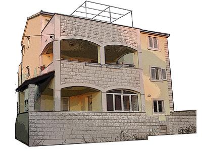 Apartmány jsou situovány v klidné vesnici na ostrově (MIRC), se nachází v blízkosti pláže, s výhledem na moře. Apartmány jsou vybaveny kuchyní, ložnice, obývací pokoj, WC, balkon. Parkování. Použití klimatu a pobytová taxa v ceně!