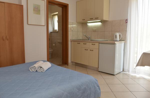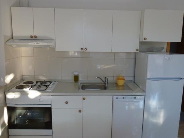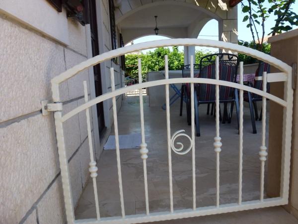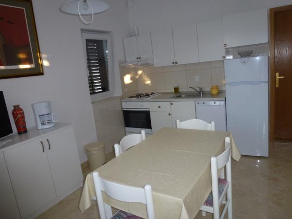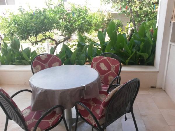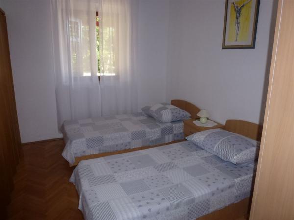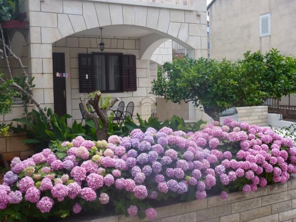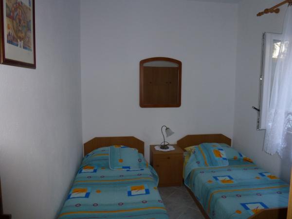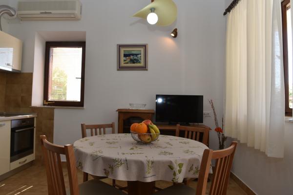 Dům je postaven z kamene a je obklopen zelení a malou sadu. Je situován v klidném prostředí a je ideální pro rodiny s dětmi a všechny ty, kdo má rád klid. Apartmány jsou dobře vybavené. Parkování pro hosty je zajištěno. Gril se nachází ve dvoře. V biziini, jen pár kroků, je oblázková a písečná pláž. Si můžete pronajmout lehátka a slunečníky. Zhruba ve stejné vzdálenosti se nachází prodejna potravin a tenisové kurty. V areálu se nachází deset minut chůze do centra. Váš vůz si můžete zapomenout, protože ze všech míst se můžete dostat v době, kdy dva až deset minut.