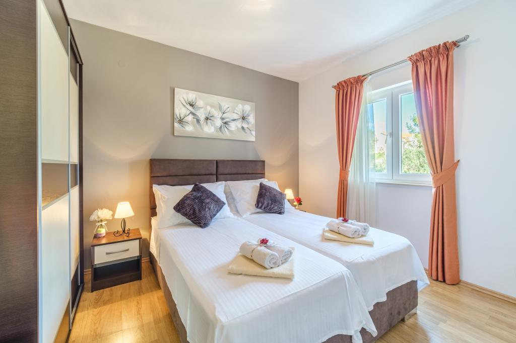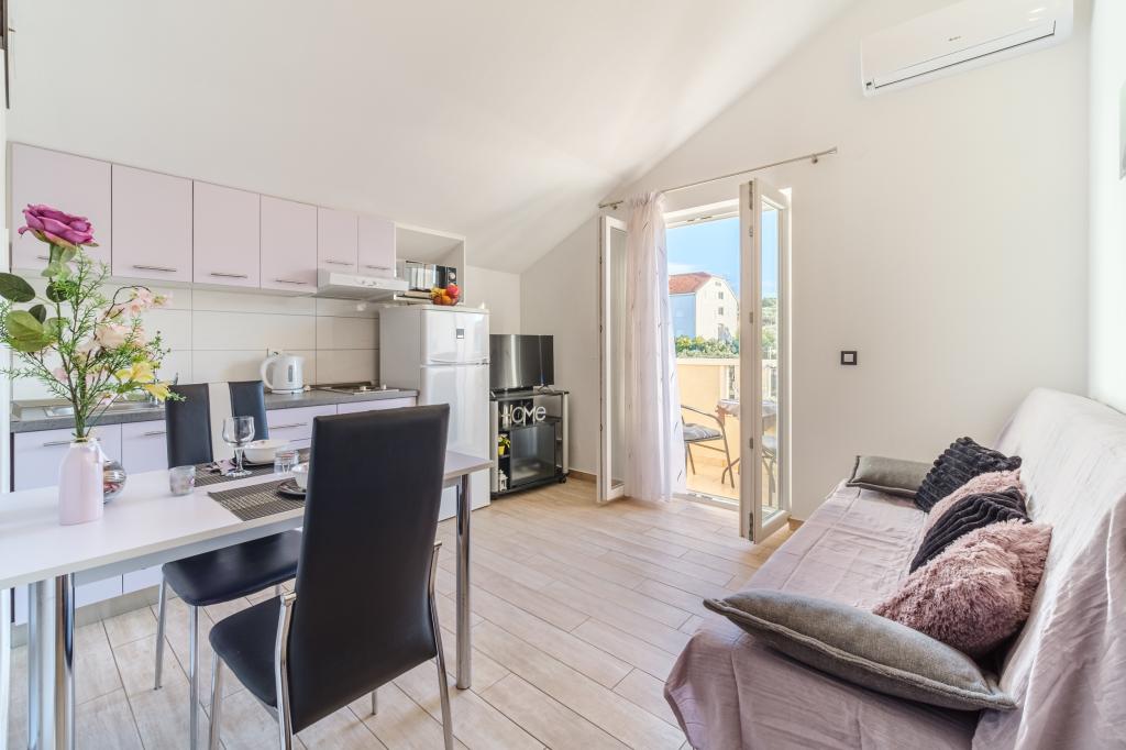Zcela nová zařízení, která se letos poprvé pronajímá své byty. Apartmány jsou pohodlné, pěkně zařízené, plně nově zařízené. Dům se nachází v nové části Vojalo, na klidném místě s krásným výhledem (několik domů v okolí). Máte všechny předpoklady pro zábavu a relaxaci. Pláže jsou jen 5-10 minut chůze. Pěšky do centra města trvá 20 minut a umožní vám prozkoumat a podívat se po celém místě Supetar.