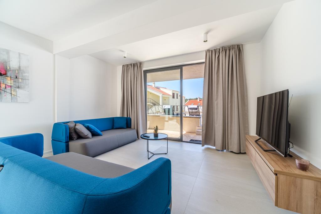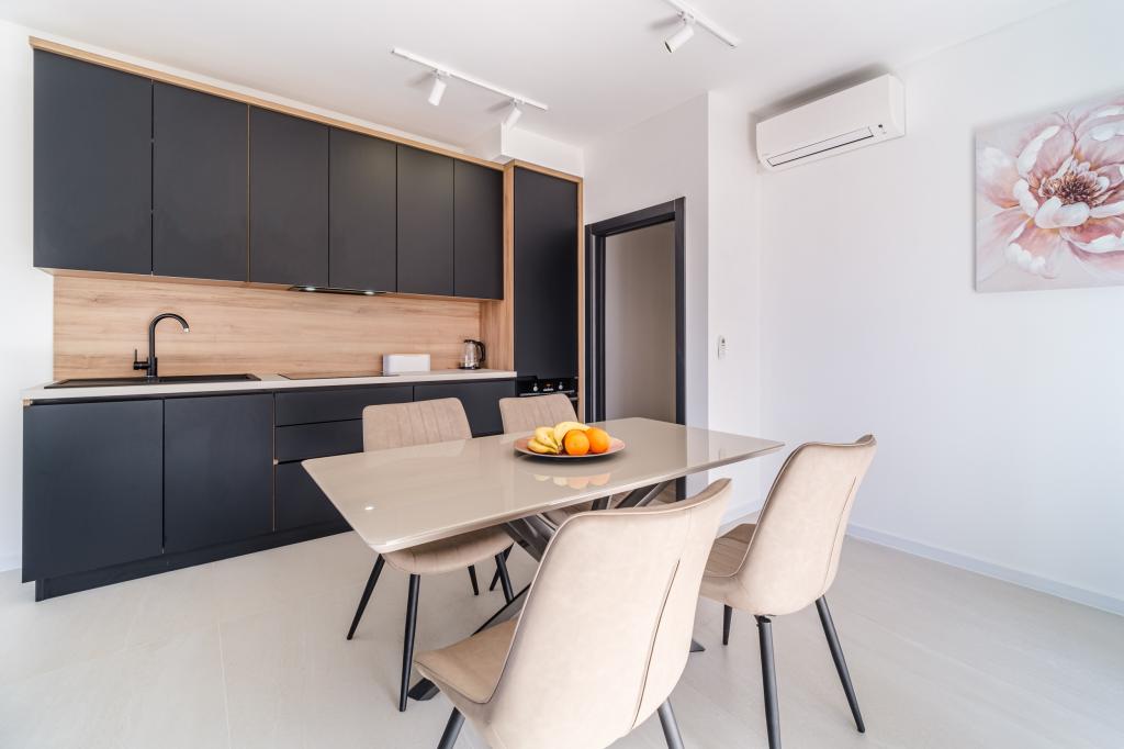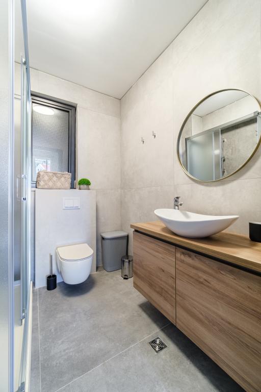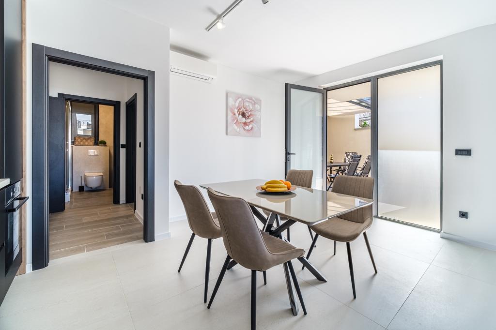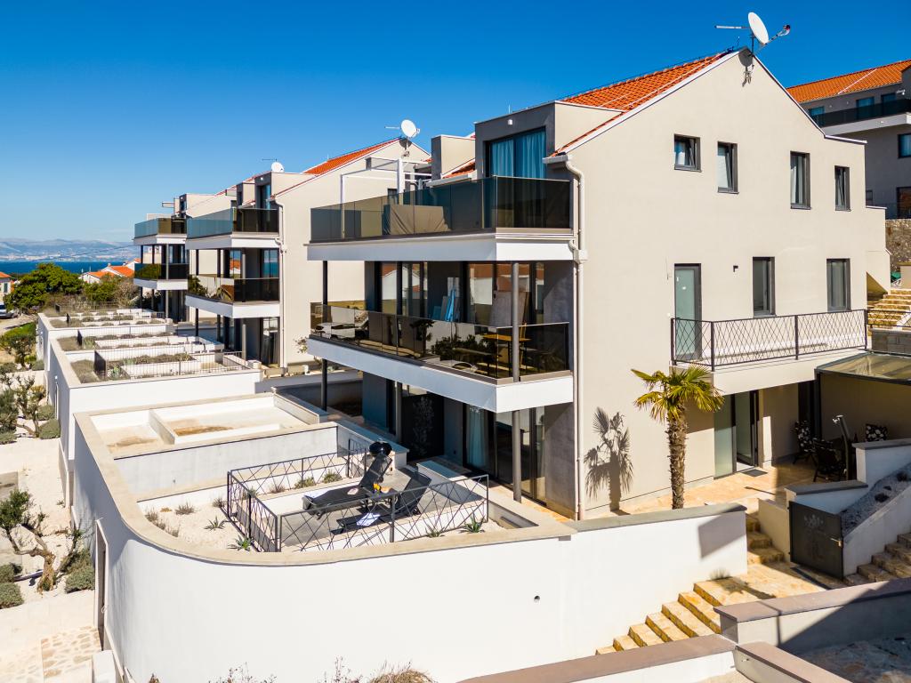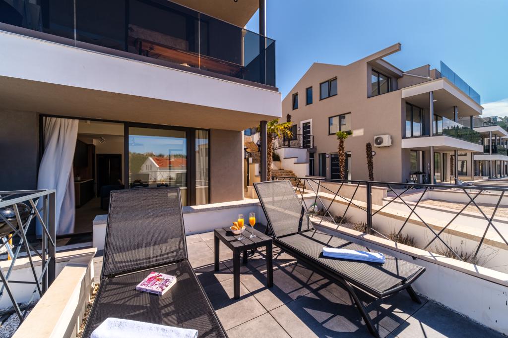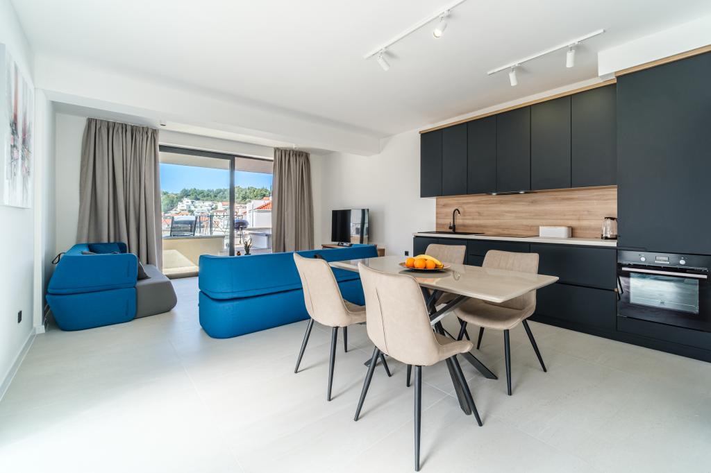 Nový a moderně vybavený apartmán se nachází v Sutivan, malém městě na Brači, o rozloze 67 m2. Je 7 minut chůze od pláže a centra města. Tento apartmán má 1 ložnici s manželskou postelí , velký obývací pokoj se 2 rozkládacími lůžky (u prostoria). pro 4 osoby, moderní kuchyň s jídelním koutem a koupelnou. Apartmán má 2 klimatizace, Wi-Fi, TV a satelitní anténu se 116 programy Byt má 2 terasy, přední terasa je vybavena lehátky na opalování, zatímco hlavní terasa je vybavena venkovní sprchou, grilem a zahradním nábytkem pro 6 osob a krytou terasou o celkové ploše 65 m2.