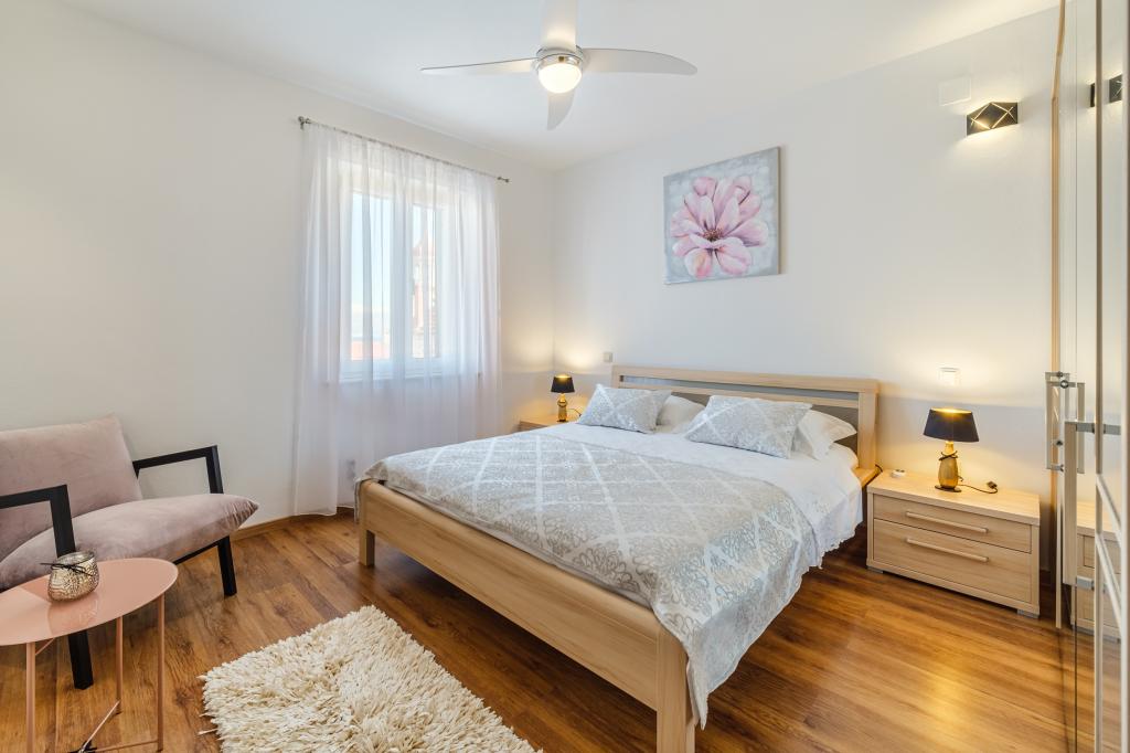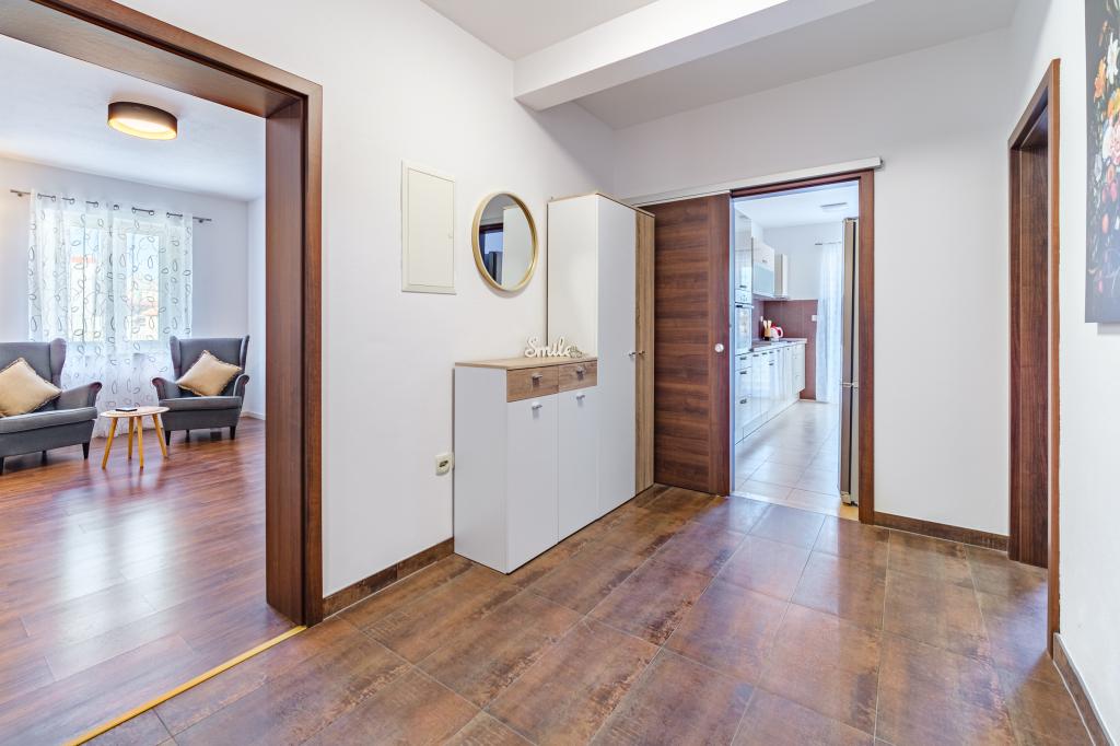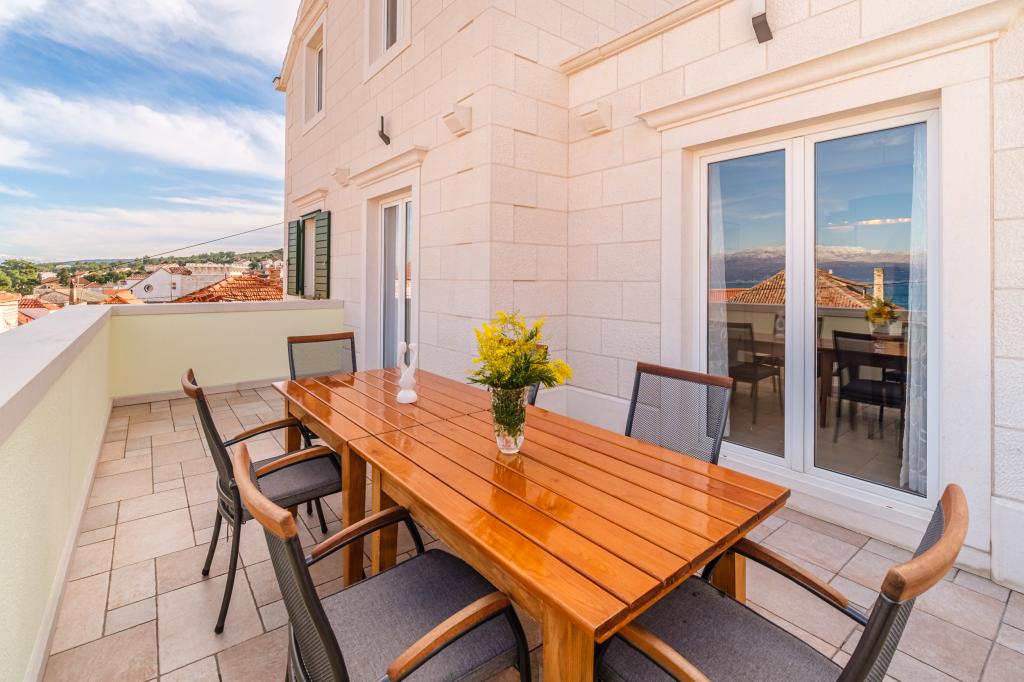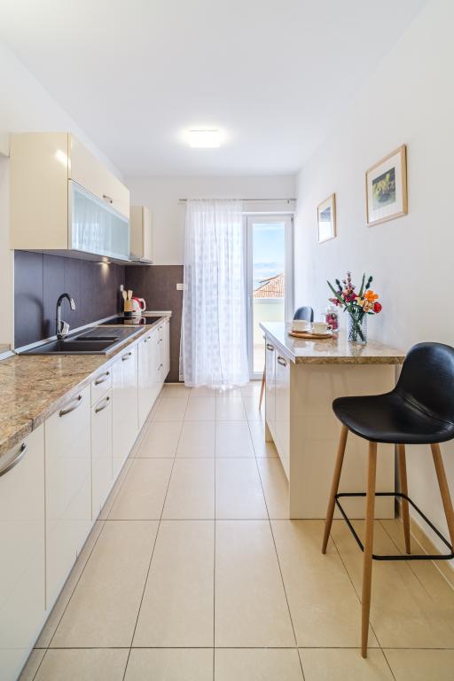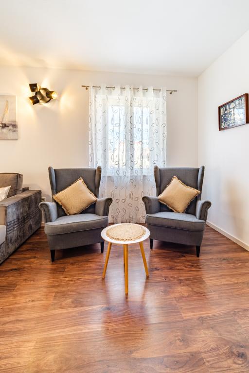 Plně a moderně vybavený apartmán v luxusním domě v klidné části Sutivan, který se nachází v samém centru města, druhá řada k moři. Zařízení je 2 minuty chůze od první pláže a nachází se v samém centru města. Zařízení nabízí ubytovací služby v jednom apartmánu. Apartmán nabízí ubytování pro 6 osob, v případě potřeby s dalšími dvěma na přistýlce. K bytu náleží parkovací stání v garáži. Zařízení nabízí grilovací služby se speciálně vybaveným jídelním koutem, barem a dřezem. Byt má dvě terasy, z nichž jedna je o velikosti 20 m2 s výhledem na moře a druhá na jižní straně 8,5 m2. Nemovitost nabízí prádelnu. Byt má 3 ložnice, 2 koupelny a jednu další toaletu. Obývací pokoj a jídelna tvoří jeden prostor 50 m2.