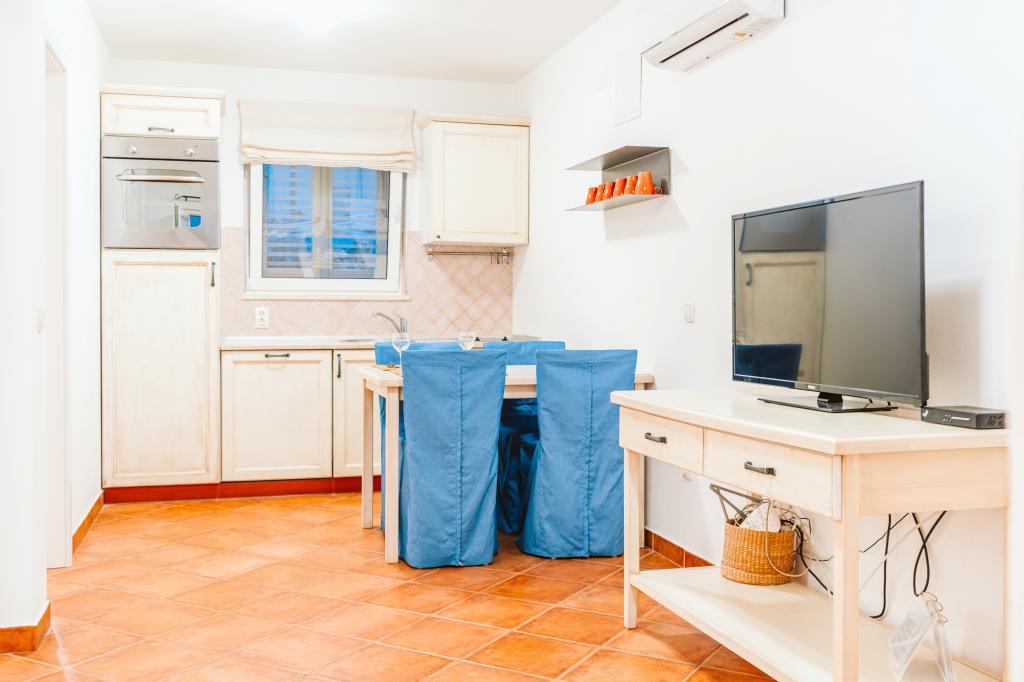 Pobytová taxa není v ceně.Všechny apartmány jsou klimatizované, vybaveny dalšími stropní ventilátory v ložnicích, bezpečnostní trezory, satelitní TV, Wi-Fi poplatků. Všechny apartmány jsou plně vybavená kuchyň (sklokeramická deska, lednice, myčka, trouba a sadou nádobí), koupelna (vysoušeč vlasů) a terasa (otevřené moře). Nábytek je vyroben z masivního dřeva, speciálně navržené a přizpůsobené dokončit atmosféru a okolní interiér. Nabídka domu je používání jízdních kol a venkovní dětské hřiště.