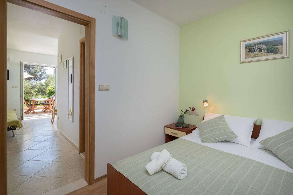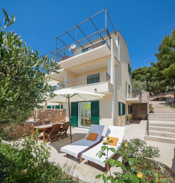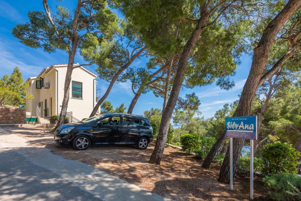 Apartmány Silvana je nový dům (otevřen v roce 2013), na jižní straně ostrova Hvar, patřící rodině Plenković. Dům se nachází pouhých 30 metrů od moře, ve vesničce Sveta Nedjelja, daleko od ruchu velkoměsta a průmyslu. V domě jsou dva apartmány. Každý apartmán má obývací pokoj a kuchyň, koupelnu a prostornou terasu s výhledem na moře. Kuchyň je plně vybavena, nechybí ani TV. Parkování je zdarma, domácí zvířata na vyžádání. Dům je částečně obklopen borovým lesem, takže si můžete vychutnat jak slunce, tak stín a klid. Existuje několik možností ke koupání. Buď si můžete skočit do moře z některého z betonových plácků (1-2 minut pěšky), nebo můžete jít na krásnou oblázkovou pláž (4-5 minut chůze). Na další pláže se dostanete pěšky, autem nebo lodí. V blízkém okolí je pekárna, stánek s ovocem a zeleninou a dvě restaurace...