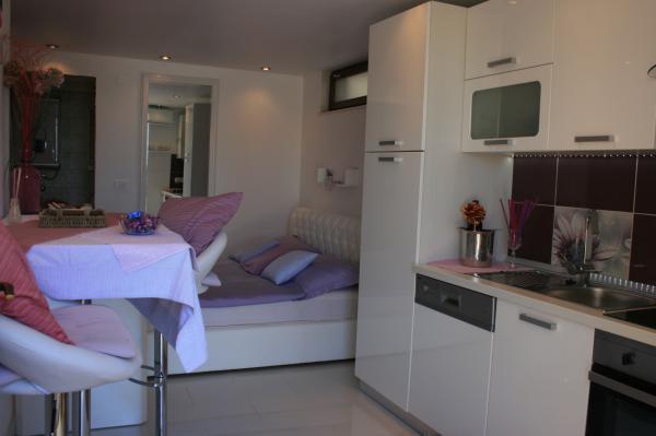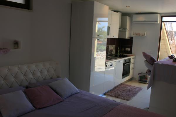Nino Apartmány se skládají ze tří samostatných apartmánů, z nichž každý se samostatným vchodem. Dům se nachází v klidné, idylické místo, daleko od shonu města, s krásným olivovém háji, která nabízí ničím nerušený výhled na moře. Každý apartmán má Wi-Fi připojení k internetu a TV. Venkovní parkoviště s jedním parkovacím místem pro každý apartmán.