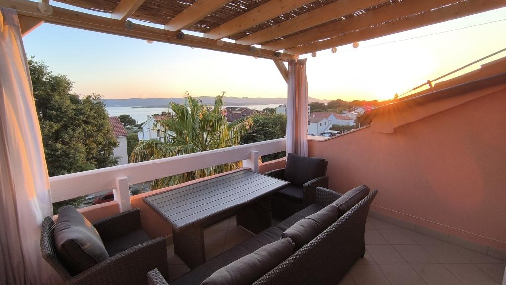 Apartmán Maja s krásným výhledem na moře a ostrovy se nachází v klidné lokalitě nedaleko centra města a jen 200 metrů od hlavní pláže. Nachází se v bytovém domě v nejvyšším, 3. patře, bez výtahu. Byt se skládá ze dvou ložnic, prostorného obývacího pokoje, kuchyně, koupelny a terasy s výhledem na nedaleké ostrovy, moře, přístav a město Biograd. Parkování je možné před budovou nebo na veřejném parkovišti vzdáleném pouhých 50 metrů.