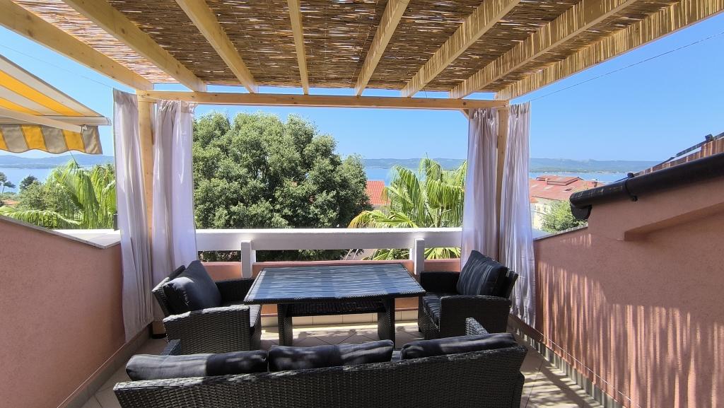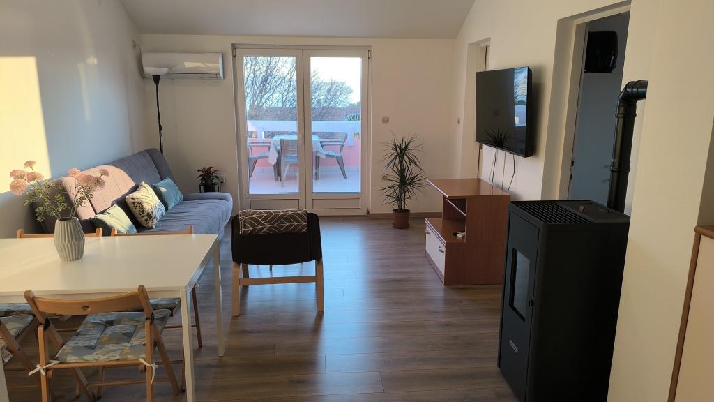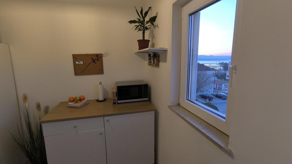Pěkně zařízený a vybavený apartmán, v kuchyni horkovzdušná fritéza, toustovač, kávovar, mikrovlnka. Vše čisté a uklizené, přivítali nás ručníky a minimální hygienické potřeby. Pěkná terasa s krásným výhledem na moře, centrum města a Biograd. Skvělá lokalita, pláž blízko, centrum blízko, větší obchody 5 minut autem. Vřele doporučuji.