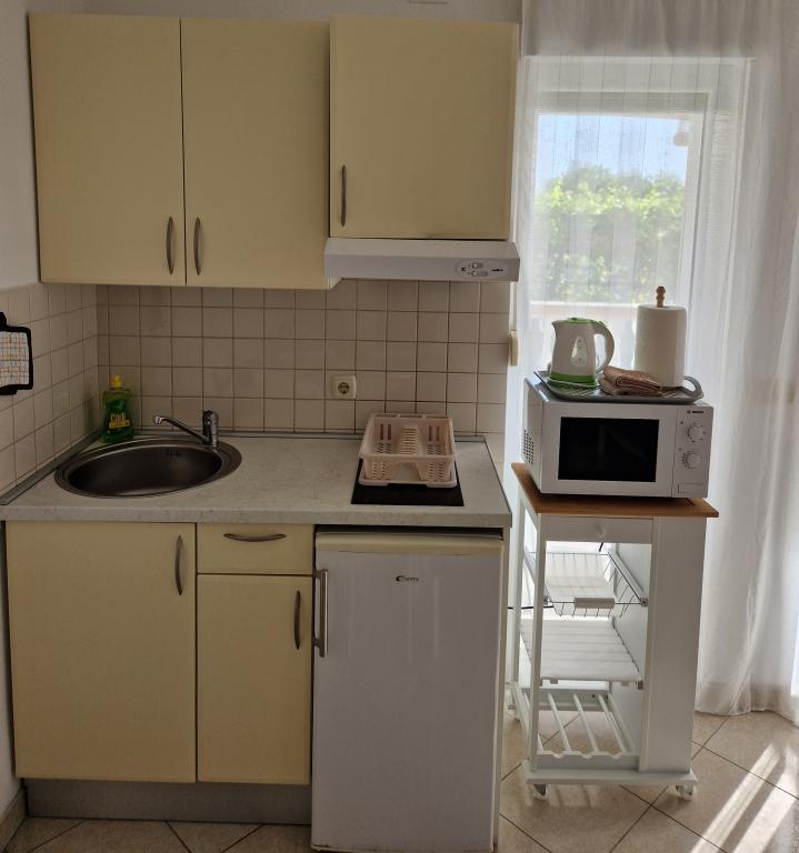 Studio apartmán je velmi prostorný s velkou terasou, majitelé jsou velmi přátelští. V blízkosti je krásná a dobře uspořádaná pláž. Byli jsme velmi spokojeni, vrátíme se.