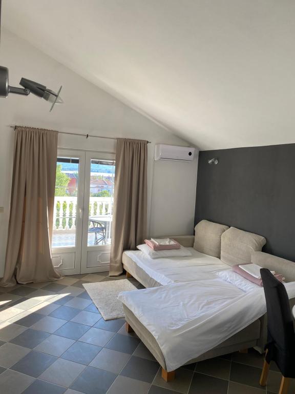 Pronájem tři byty v domě v blízkosti centra a pláže obiteljsljske. Dva apartmány pro čtyři osoby jsou na patře, třetí byt 110 m2, 6 + 2 na zemi kuće.Apartmani 2 +2 má jednu ložnici s manželskou postelí a dvě přistýlky v obývacím pokoji, kuchyň, terasa s výhledem na moře, TV se satelitním příjmem a bezdrátovým připojením k internetu. Apartmán pro osm osob se třemi ložnicemi a dvěma přistýlkami v obývacím pokoji, kuchyň, koupelna se sprchovým koutem, WC, terasa s výhledem na view.Apartment je klimatizovaná. Všichni naši hosté mají parkování ve dvoře, a přístup wirless síť.