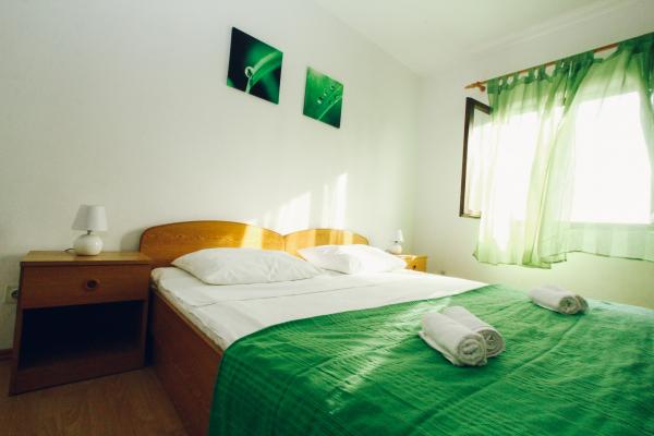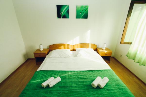 Nabízíme dva apartmány (2 osoby) a (4 osoby) apartmán s jednou ložnicí. Plně vybavené (klimatizace, TV, internet), pouhých 5 minut chůze do centra, 5 minut chůze od autobusové zastávky a 500 metrů od pláže. Autobusové linky jsou spojeny s Zadar, Split, Trogir a Split. Veřejné gril a parkoviště.