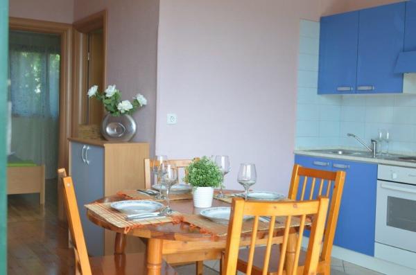 Plně vybavené a moderní apartmány v Sveti Stefan, který se nachází 300 m od moře. V areálu se nachází 10 minut chůze do centra města a pláže. Apartmány jsou velké a prostorné s dvě ložnice, koupelna, kuchyň a obývací pokoj, ze kterého vstup na terasu. Hlídané parkoviště.