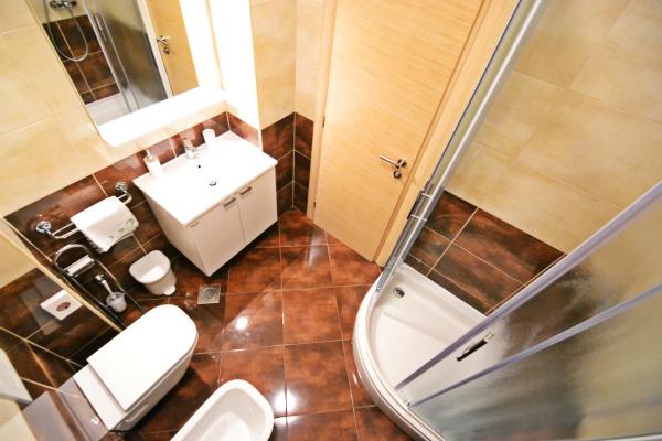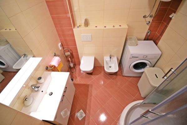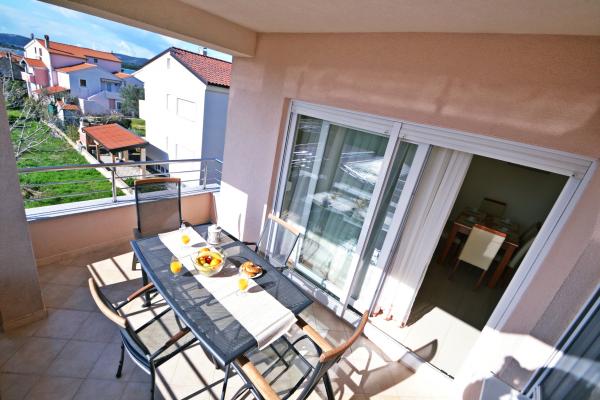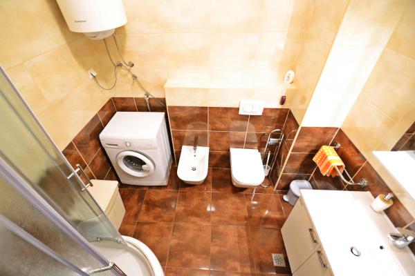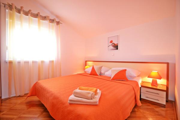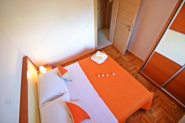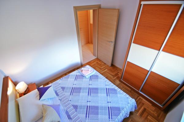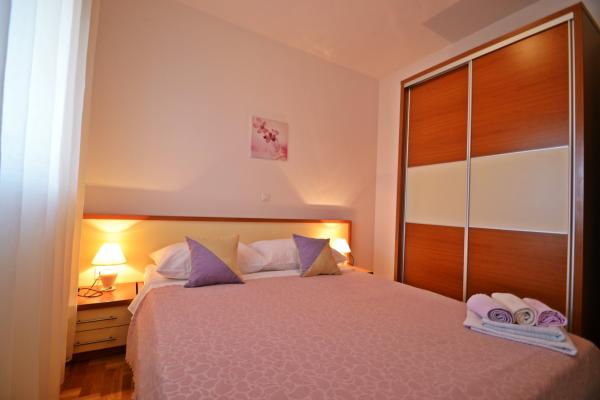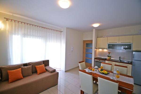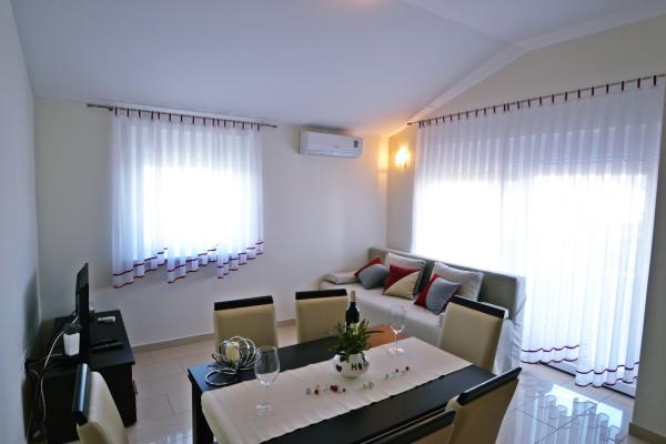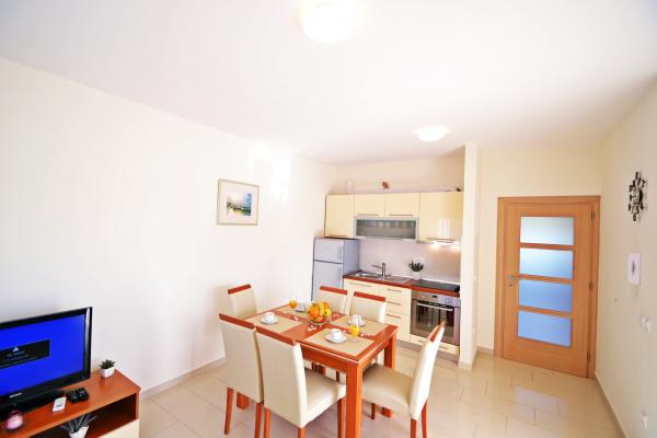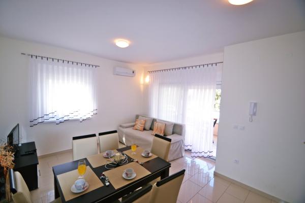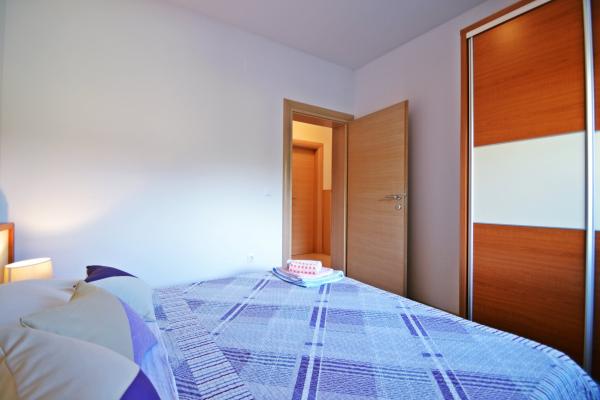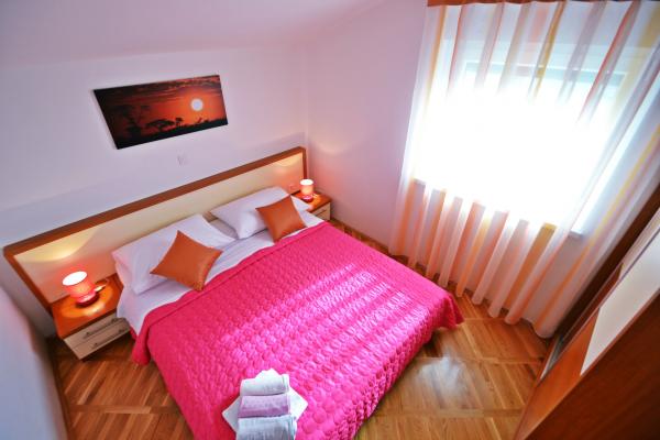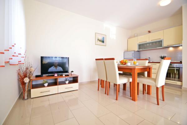 - Velmi atraktivní apartmán se dvěma ložnicemi s balkonem, luxusní novostavba - Apartmány jsou kompletně nově zařízené a nově zrekonstruované - Skládá se z předsíně chráněn bezpečnostními dveřmi, nově zařízené a plně vybavená kuchyň, jídelní kout a klimatizované a novonamještenog obývací pokoj s balkonem, dvě ložnice novonamještenih s velkou manželskou postelí, které jsou v jedné místnosti bylo třeba oddělit, a skříně a koupelna s WC - LED televizory, klimatizace, lednička s mrazákem, vestavěný sporák s keramickou deskou