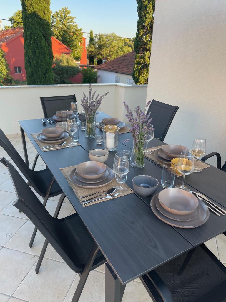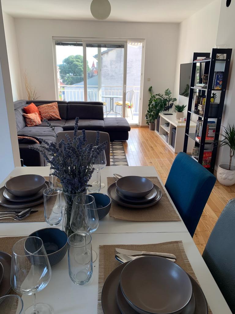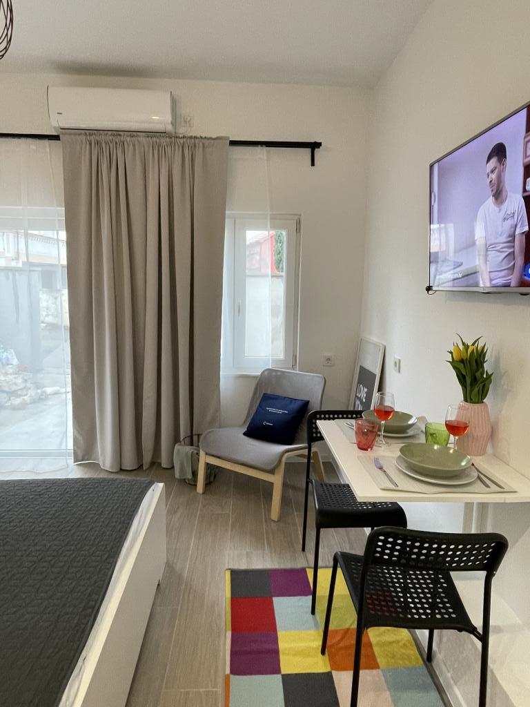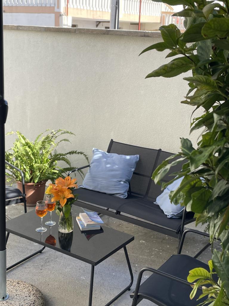 Plně vybavená garsoniéra s terasou se nachází v přízemí rodinného domu v centru obce Sveti Filip i Jakov. Byt se třemi ložnicemi, plně vybavený, s velkou terasou se zahradním nábytkem se nachází v prvním patře domu. Apartmány se nacházejí 5 minut chůze od nejbližší pláže (můžete si vybrat oblázkovou, písečnou nebo betonovou), restaurací, obchodů, pošty, sportovních zařízení, café barů... Parkování je zajištěno před domem a je v ceně v ceně. Hosté mají k dispozici také gril...