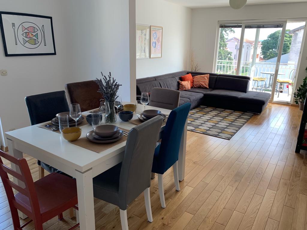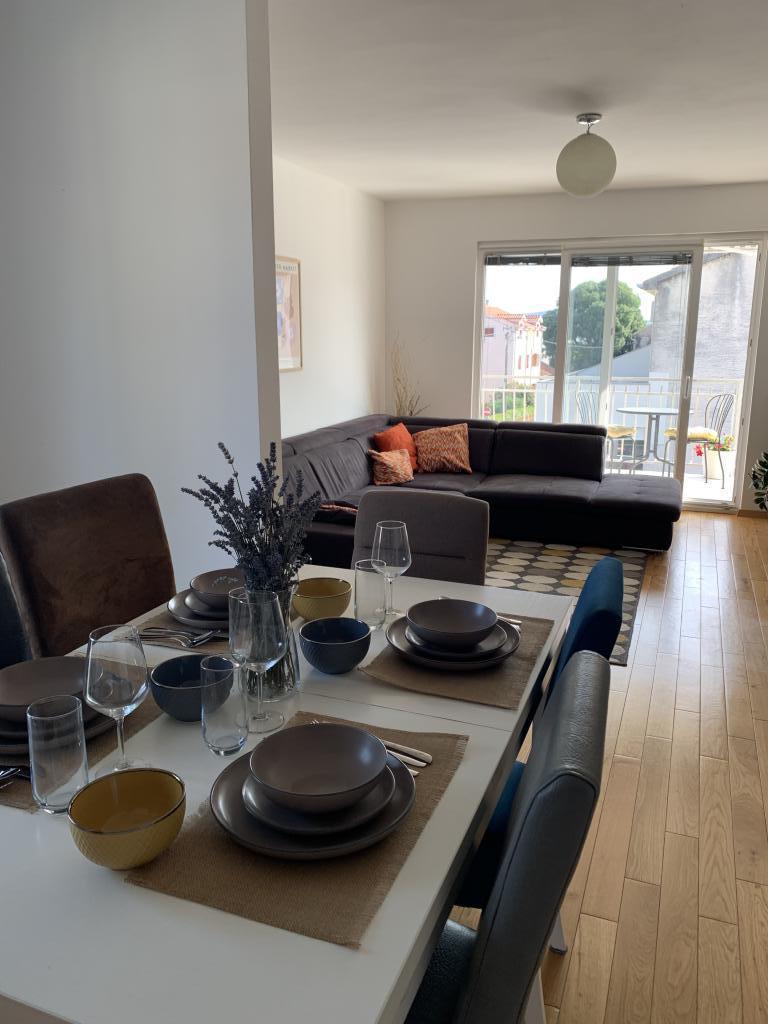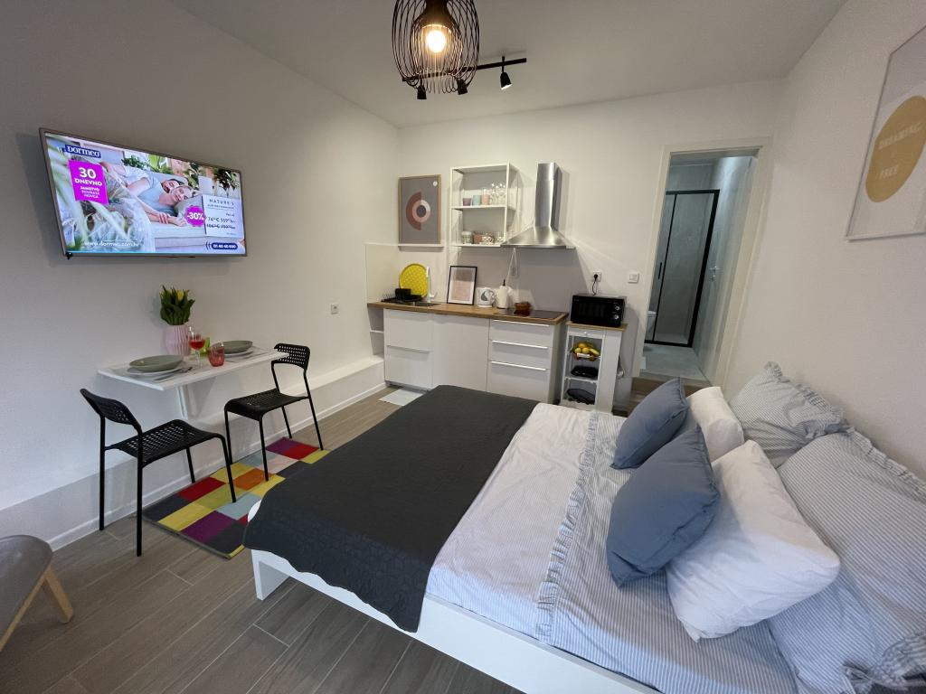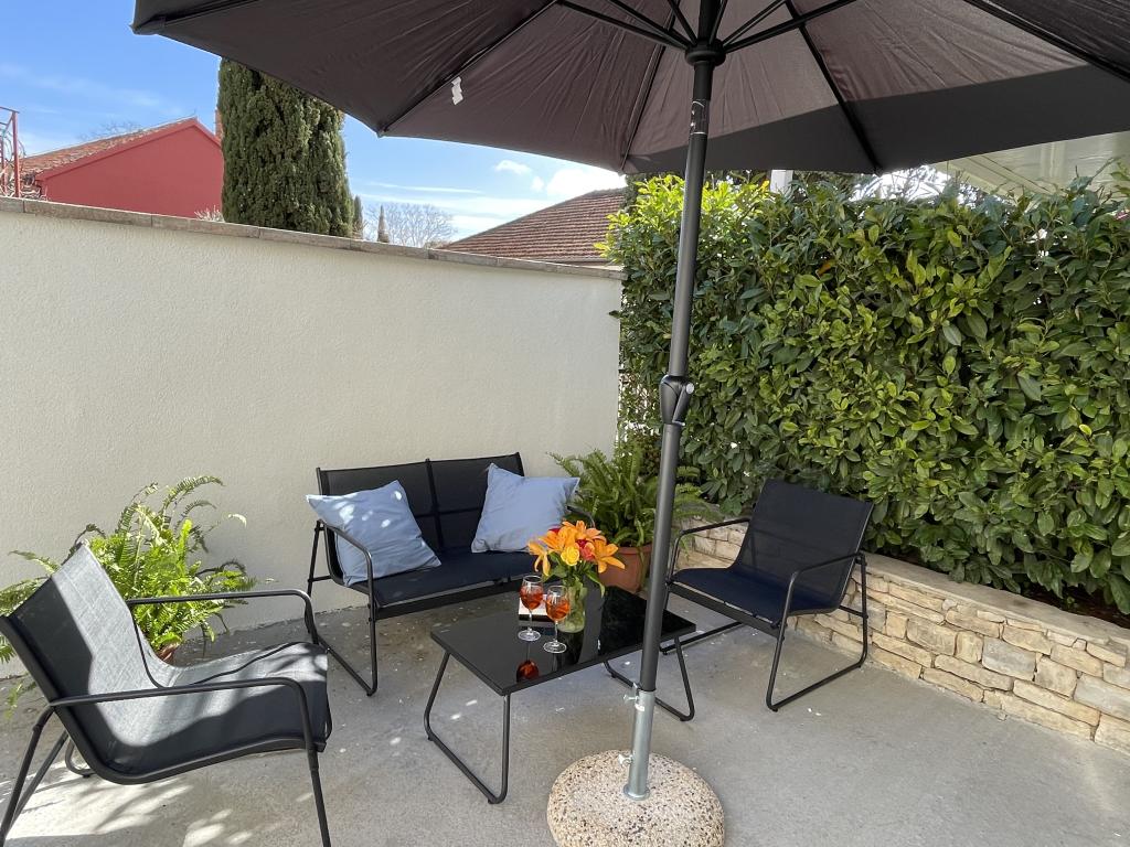 Plně vybavená garsoniéra s terasou se nachází v přízemí rodinného domu v centru obce Sveti Filip i Jakov. Byt se třemi ložnicemi, plně vybavený, s velkou terasou se zahradním nábytkem se nachází v prvním patře domu. Apartmány se nacházejí 5 minut chůze od nejbližší pláže (můžete si vybrat oblázkovou, písečnou nebo betonovou), restaurací, obchodů, pošty, sportovních zařízení, café barů... Parkování je zajištěno před domem a je v ceně v ceně. Hosté mají k dispozici také gril...
