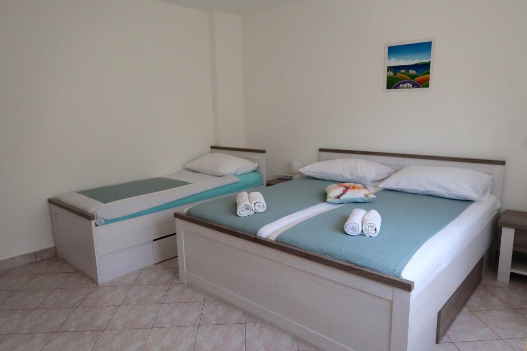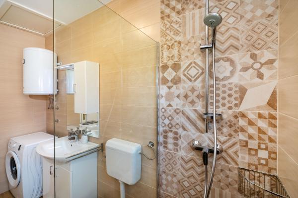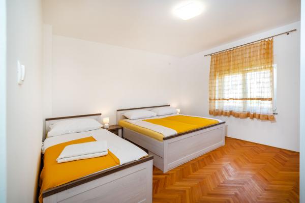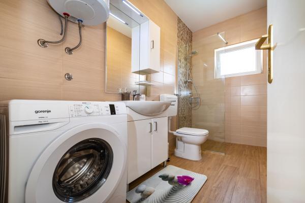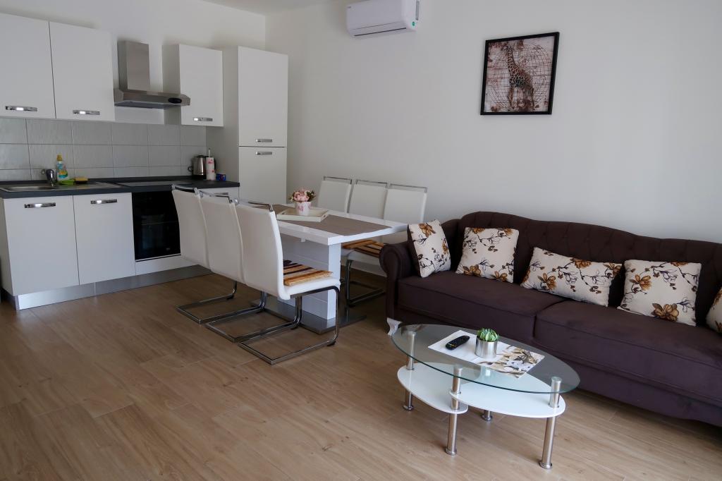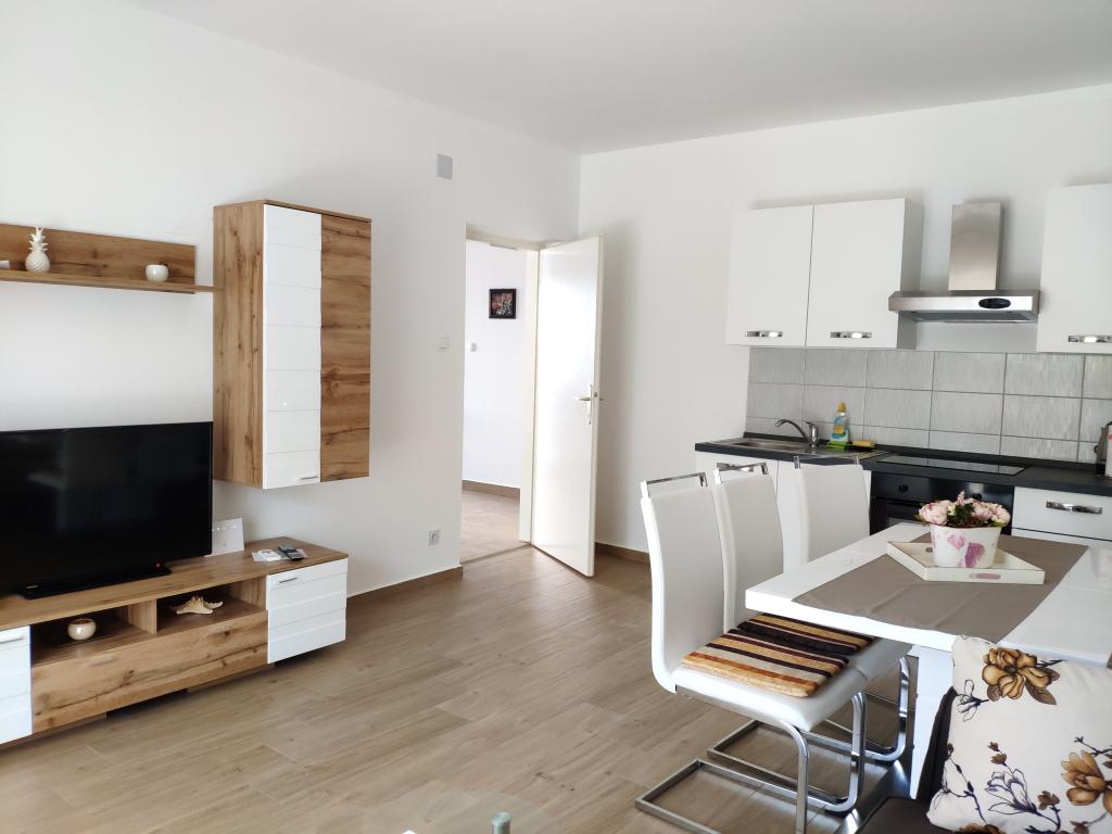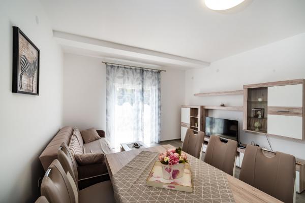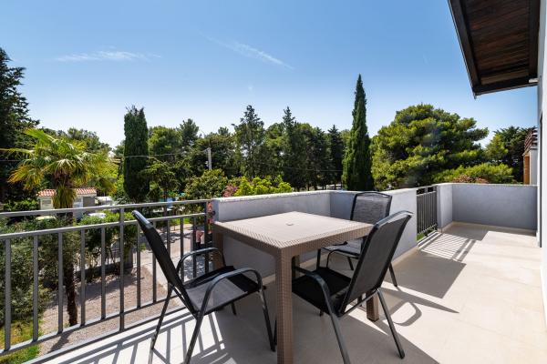 Apartmán je moderně zařízený a nachází se v nově zrekonstruovaném domě jen 150 metrů od hlavní pláže a 200 metrů od centra. Pokoje jsou prostorné a slunné. V bytě je velký balkon s relaxačním "zeleným" výhledem. Pláže v Filip-Jakov jsou krásně zdobené, v blízkosti bytu je betonová, písečná a oblázková pláž.