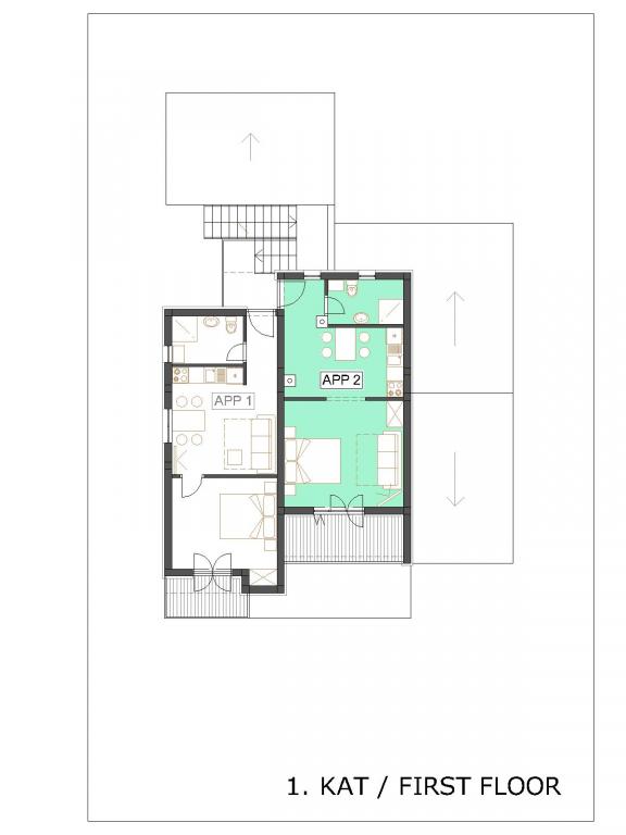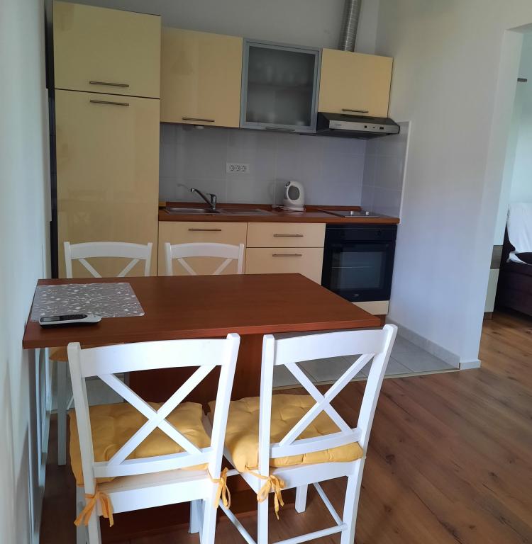 Apartmán s jednou ložnicí (APP 1) a velký studiový apartmán (APP 2) se 4 *, oba o velikosti 38 m2, terasa s výhledem na moře, v 1. patře rodinného domu. V klidné části města, v blízkosti písečných a oblázkových pláží ve vzdálenosti 100 m. Plně vybaven. Ideální, pohodlné ubytování pro dvě osoby nebo pár s dětmi.