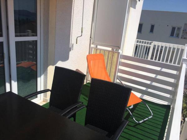 Apartmány s výhledem na moře: terasa, klimatizace, topení, gril, parkoviště, wifi. 450 m od pláže. 400 m od centra, 350 m od obchodu.