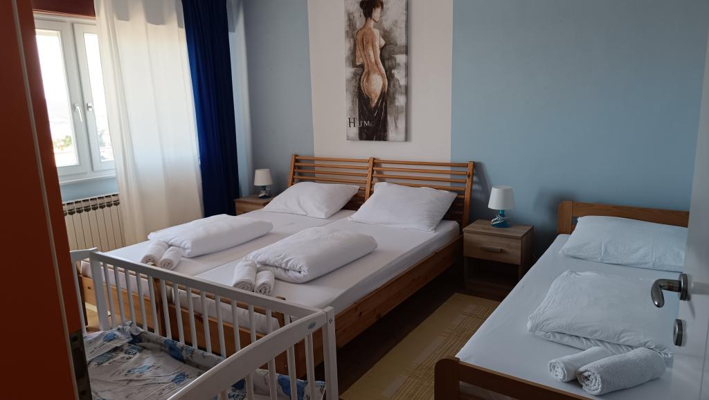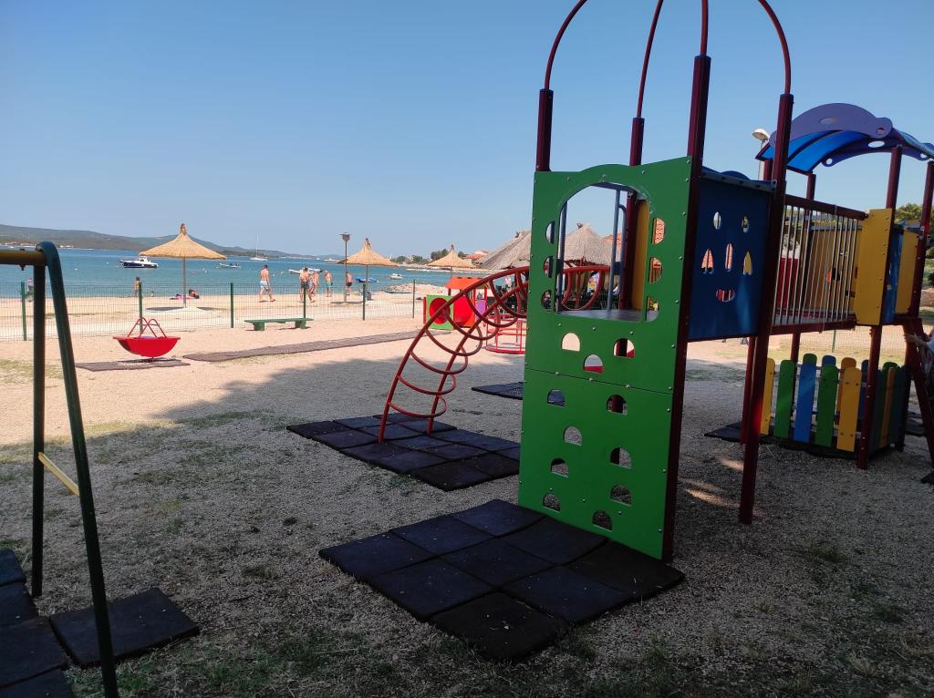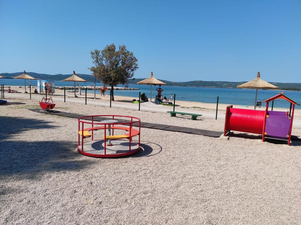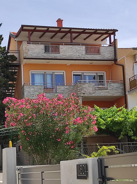 Plně zařízené a vybavené apartmány 60m² + terasa v klidné lokalitě. Zařízení se nachází 15 minut chůze od písečných a oblázkových pláží vhodných pro děti. Také 15 minut chůze je centrum s tržnicí, restauracemi, cukrárnami, obchody (Konzum, Plodine, Tommy market...), poliklinika, lékárna, pošta, dětská hřiště atd. Ve dvoře jsou přísl. zařízení, venkovní gril, dřez se skříňkami obsahující vše potřebné pro podávání jídla, stůl a židle ve stínu. K dispozici je také nabíjení elektromobilů. Ke každému bytu náleží jedno kryté parkovací stání. Přibližně padesát metrů od bytu je místo pro další vozidla (zdarma).