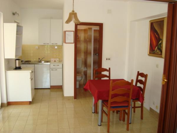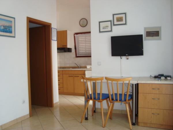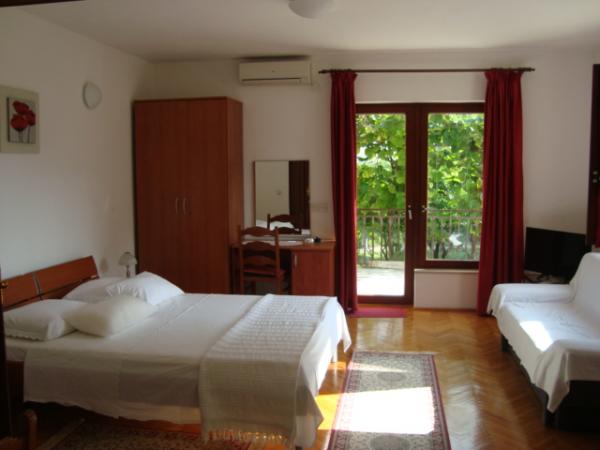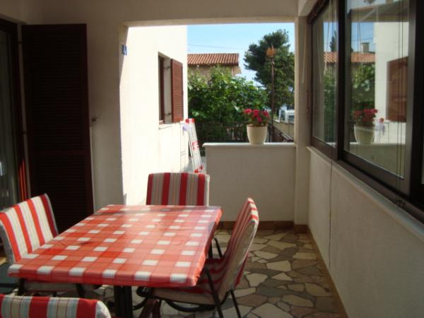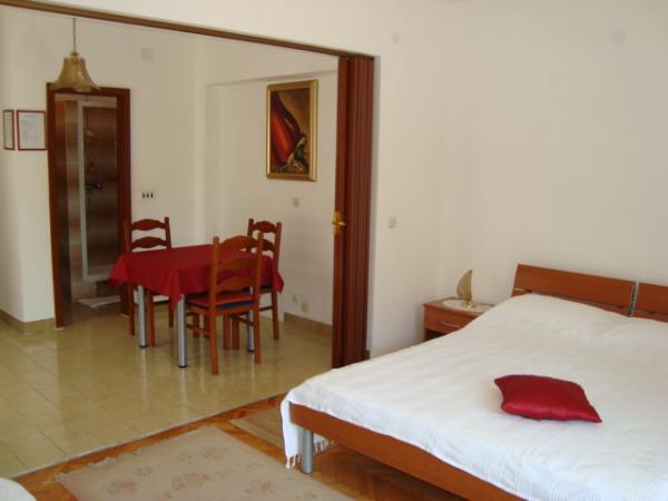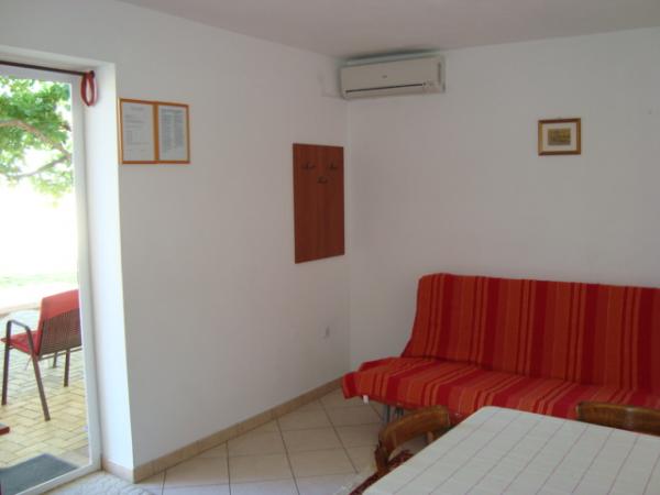 apartmán A: velmi výhodné místo k moři, krytá venkovní posezení, hostitelská rodina velmi přátelská a užitečná, čistá, klimatizace. Ideální pro relaxaci.