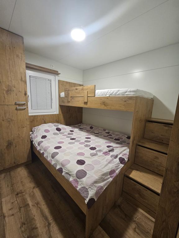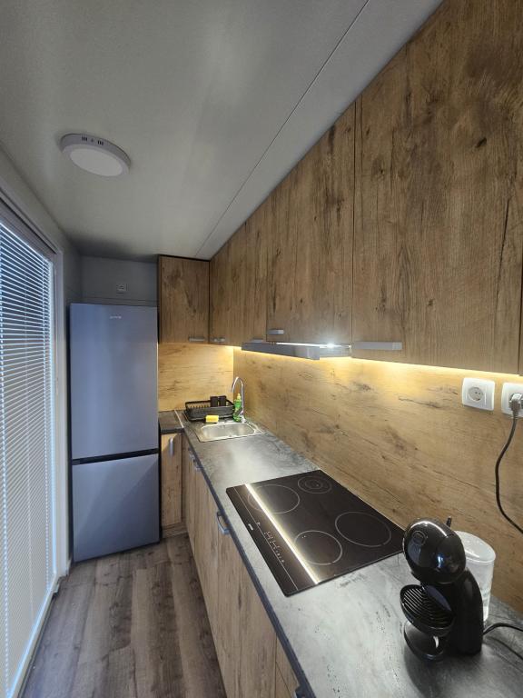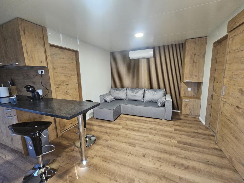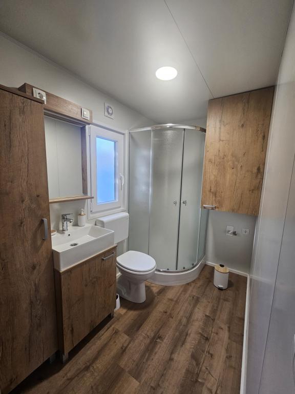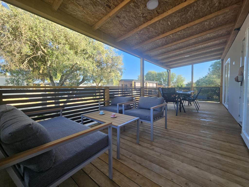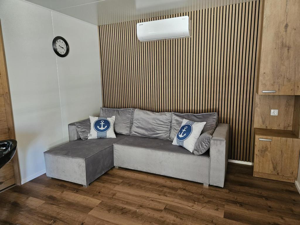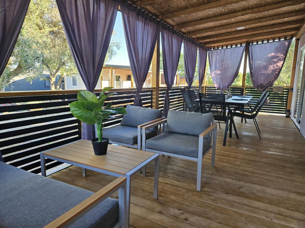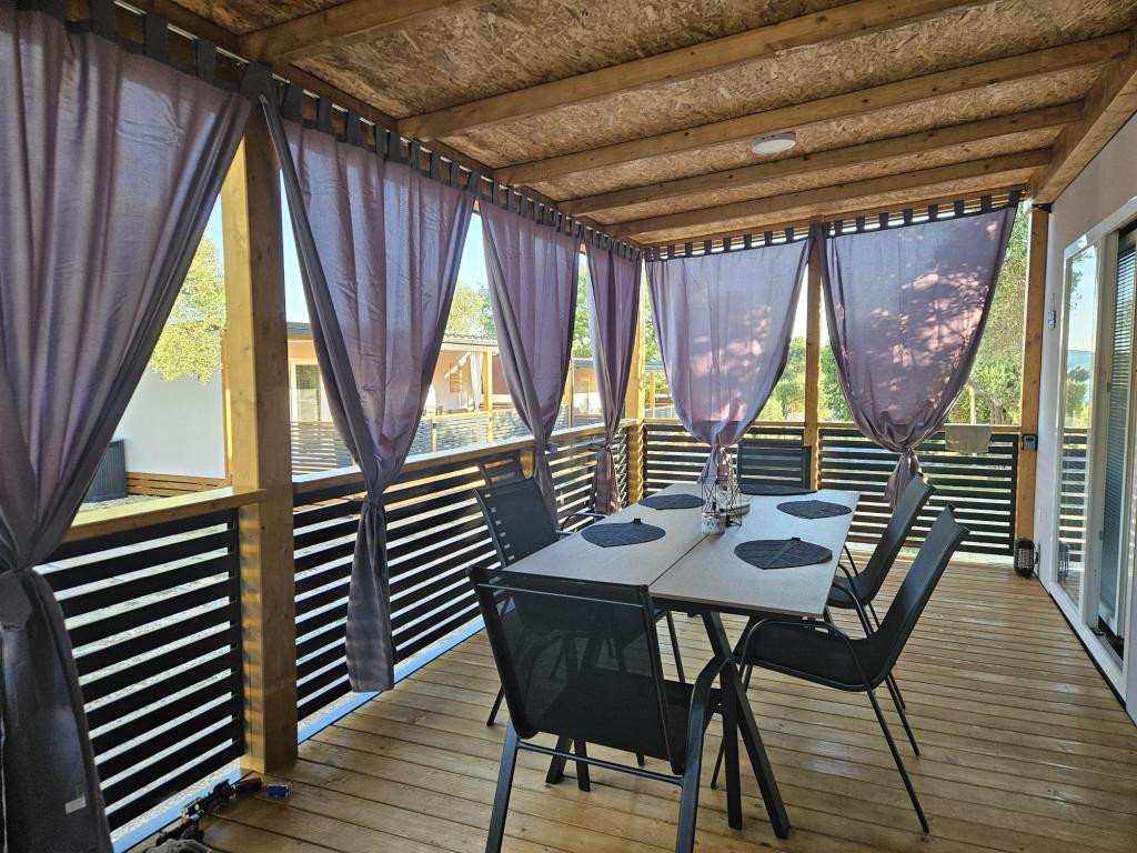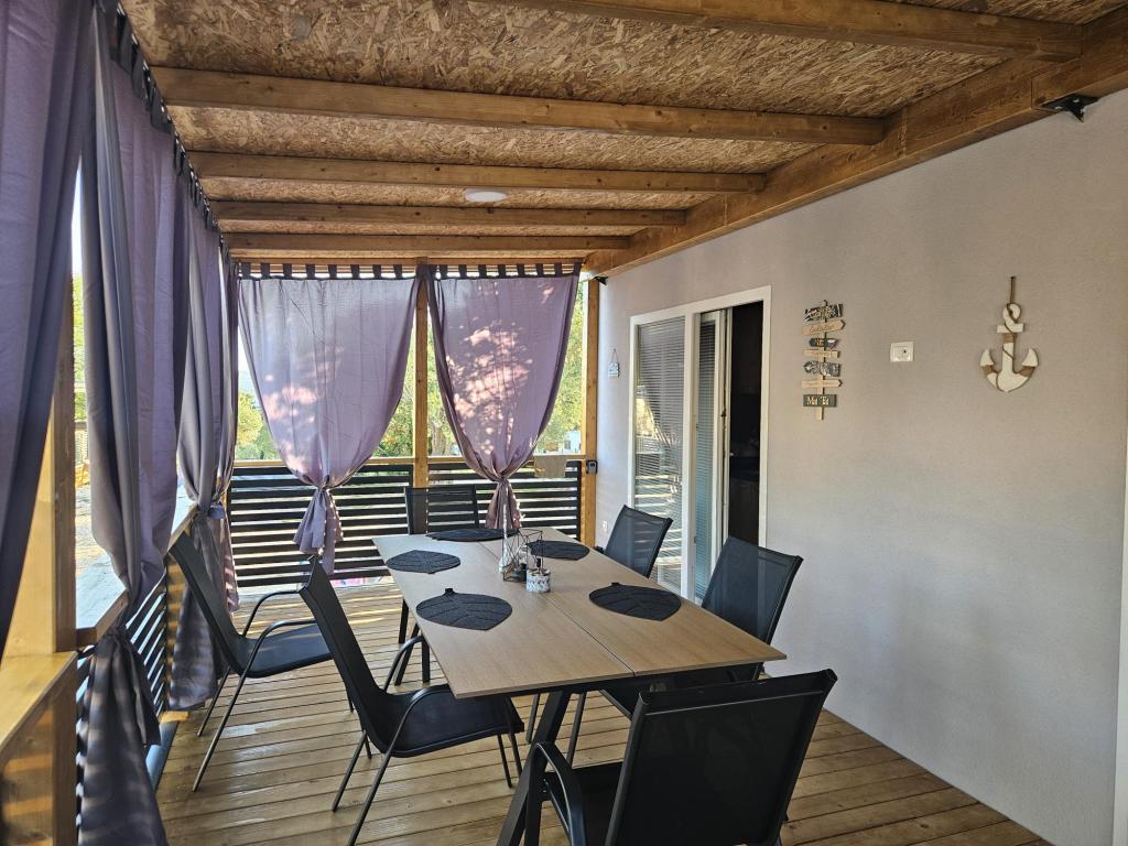 Nový moderní mobilní dům. Nachází se v klidné a malé vesnici, velmi blízko krásné pláže. Výhled na moře, velká zařízená terasa, plynový gril pro vaši perfektní dovolenou. Skládá se ze 2 ložnic, koupelny, kuchyně a obývacího pokoje s rozkládací pohovkou. Zařízení se nachází přímo na pobřeží, 100 metrů od moře, restaurací a kaváren a pouhých 500 metrů od obchodů, pekárny a rybího trhu v centru města. Hosté mají přístup k televizi, internetu, klimatizaci, plynovému grilu, fénu a bezplatnému parkování.