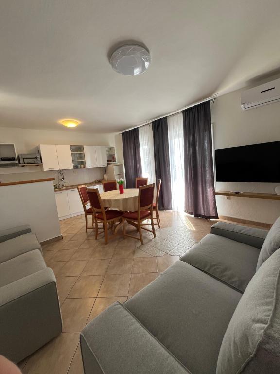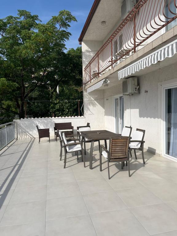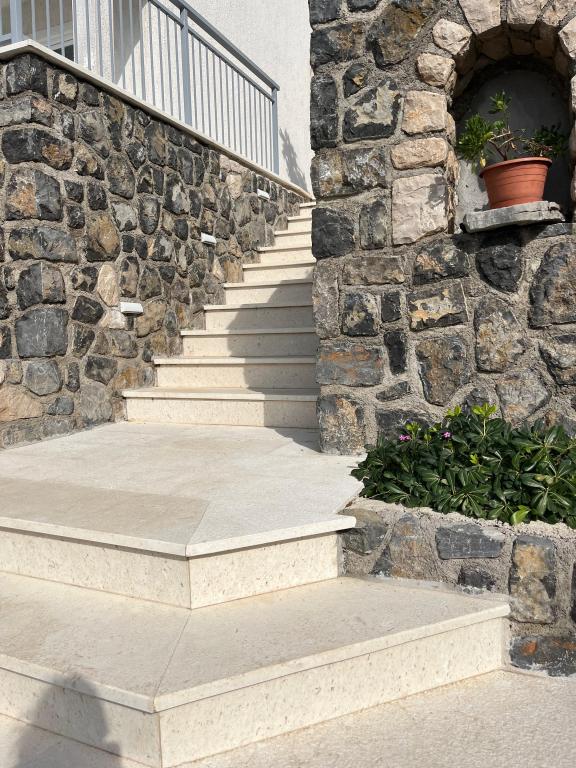 Vítejte v našich pohodlných a prostorných apartmánech v klidném a příjemném městečku Sveti Juraj nedaleko Senje. Naše apartmány vám nabízejí klidný pobyt v blízkosti krásného Jaderského moře. Vzdálenost od pláže a centra města je 150 metrů. Každý apartmán může ubytovat až 7 osob. Každý apartmán má 3 ložnice s vlastní koupelnou, obývací pokoj a plně vybavenou kuchyň. Apartmány jsou klimatizované. Vzhledem k tomu, že budete trávit hodně času venku, náš domov nabízí velkou plochu pro relaxaci s vhodným zahradním nábytkem. Pokud si chcete připravit pohodovou večeři venku, je zde také prostor s grilem. Ve dvoře je velké soukromé parkoviště a vaše auta jsou v bezpečí. Naše apartmány jsou ideální pro klidnou rodinnou dovolenou s dětmi nebo partou přátel.