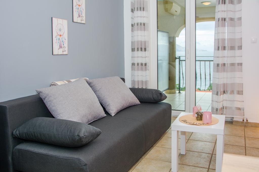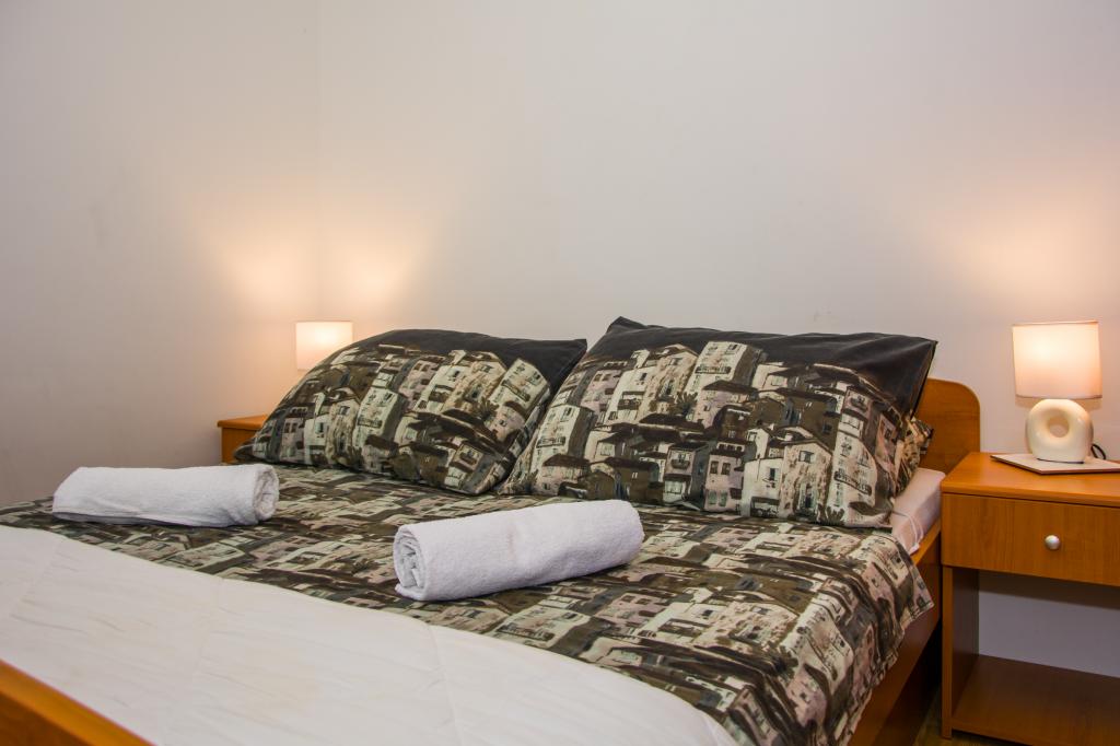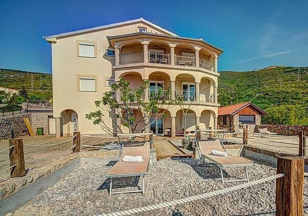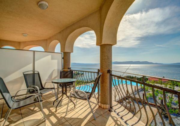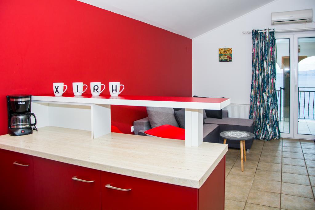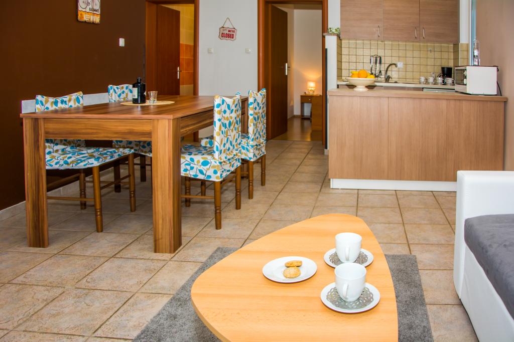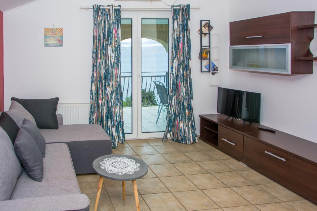 Apartmány s výhledem na moře se nacházejí v klidné vesničce Zakos. Nachází se mezi Senj a St. George ve vznešené poloze, která poskytuje dokonalý výhled na moře a okolní ostrovy. Každý apartmán (4 1) má dvě ložnice s manželskou postelí, koupelnu (sprchový kout, WC) a plně vybavenou kuchyň. Kuchyň, jídelna a obývací pokoj jsou otevřené koncepce. V obývacím pokoji je rozkládací pohovka! Byt 4 2 má 130 m2, se dvěma ložnicemi, 2 koupelnami, chodbami ve skříních. Hosté tohoto apartmánu mají k dispozici parkovací místo ve dvoře, oplocenou terasu u bazénu a velký dvůr. Všechny apartmány mají krytou terasu s posezením a všechny mají výhled na moře a bazén. Bazén je k dispozici všem hostům o velikosti 64 m2, hosté mohou také využít naše lehátka a slunečník (2 lehátka a 1 slunečník na aplikaci)