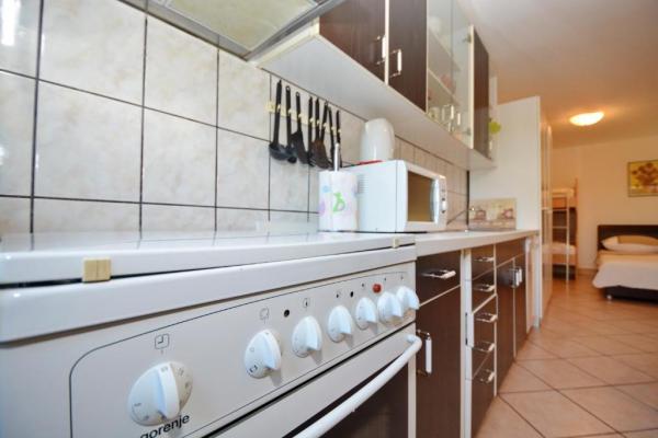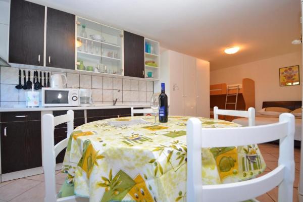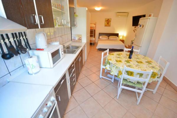 Velmi pěkný byt s novým vybavením a velkou terasou v přední části. Přátelští místní obyvatelé se nám zdarma svézt na lodi s plaváním a občerstvení. V okolí se nachází mnoho atrakcí, které pozorujeme na kolečkách. Chvályhodné.