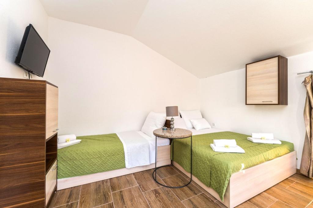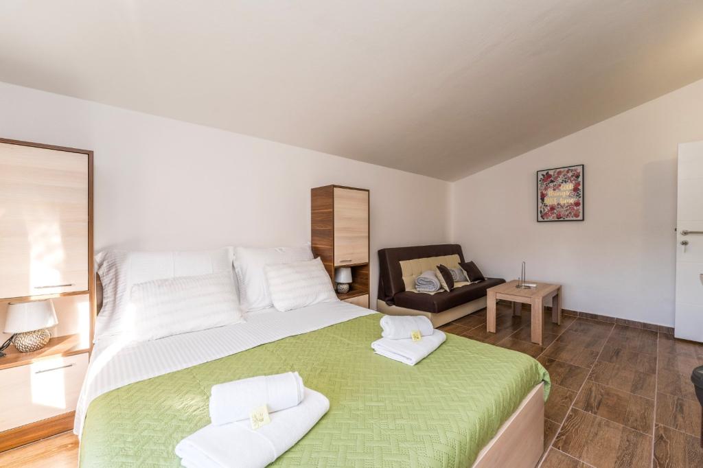Nová vila, pokoj čistý a voňavý. Na 1 noc super, jinak určitě volit apartman s balkonem- moc hezké! Moře a pláž kousek. Především ale moc příjemná a vstřícná paní majitelka. Moc děkujeme a určitě doporučujeme!