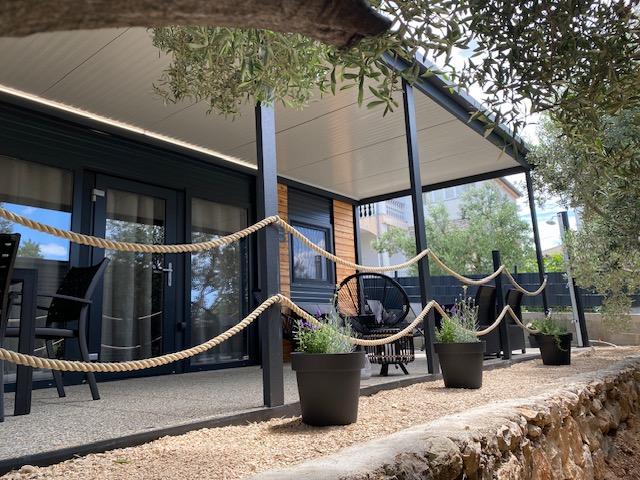 Mobilní dům ELI se nachází v klidném mini kempu ve Sveti Petar na Moru, pouhých 70 m od moře a pláže. Skládá se ze 2 ložnic (1 manželská postel a 2 samostatné postele) a další přistýlky, koupelny, kuchyně s obývacím pokojem a terasy o rozloze 24 m2 + 18 m2 plochy na opalování s venkovní sprchou. Vybavení domu: KUCHYNĚ - elektrický sporák, lednice, myčka nádobí, varná konvice, kávovar, toustovač, tyčový mixér. KOUPELNA - ručníky, fén, toaletní papír. TERASA - posezení, elektrický gril, dvě lehátka a solární sprcha. DALŠÍ VYBAVENÍ - Smart TV se satelitními kanály, ložní prádlo, klimatizace, bezplatné Wi-Fi, jedno parkovací místo