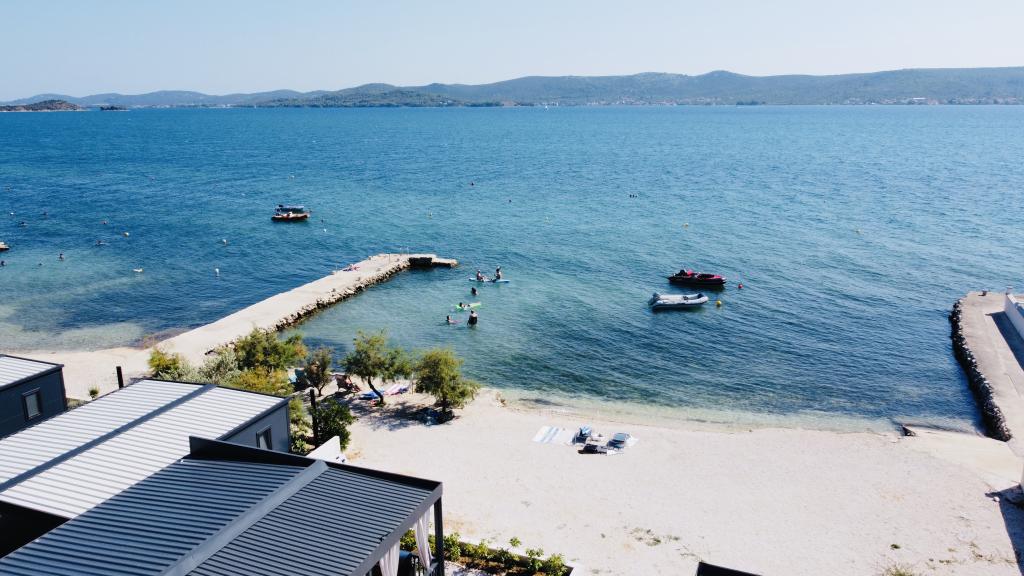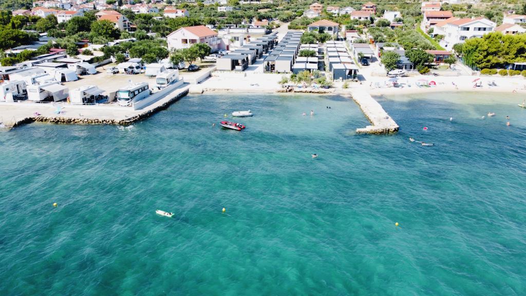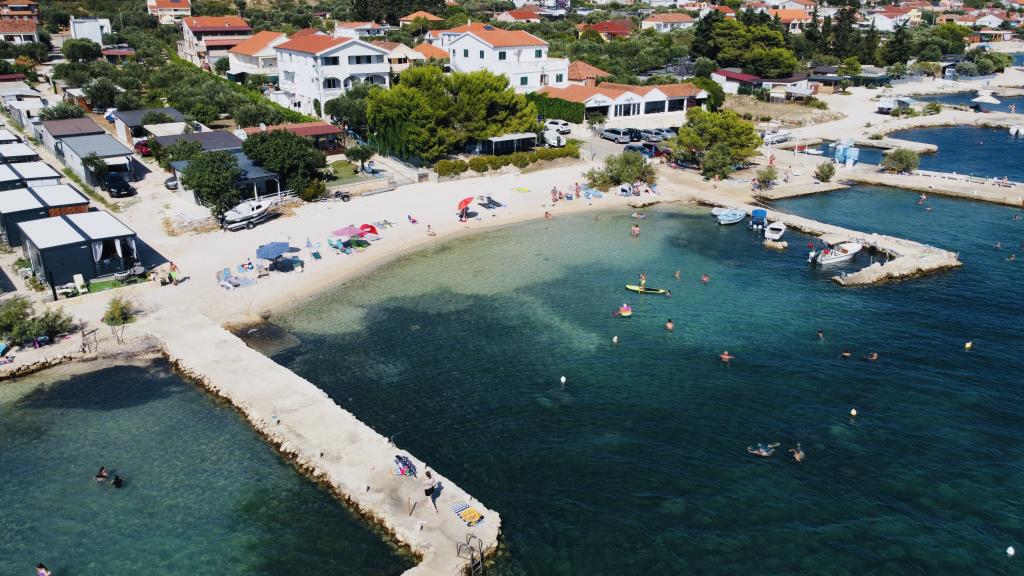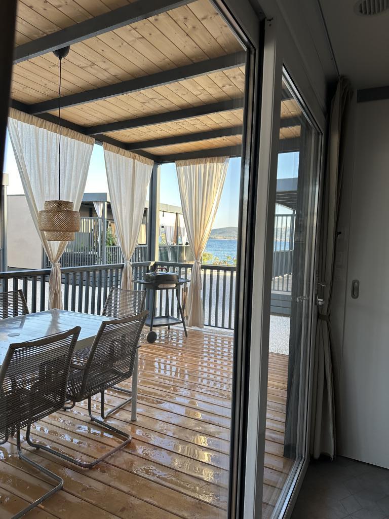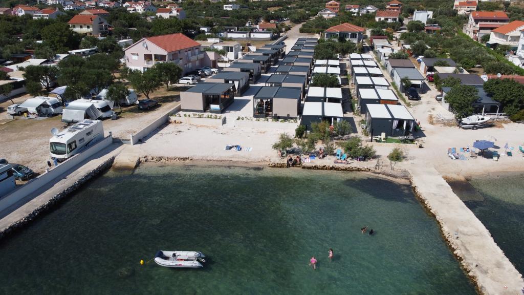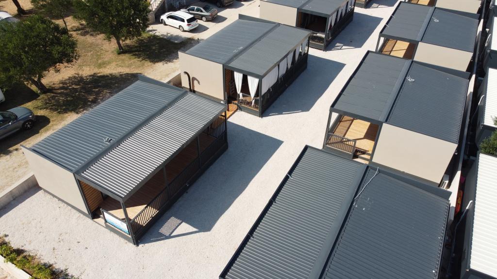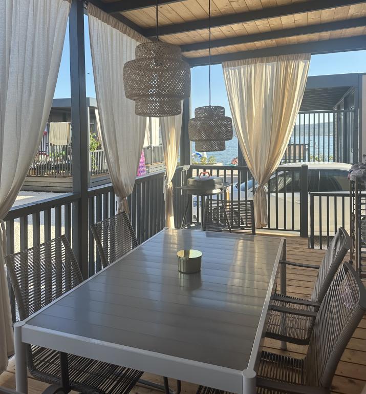 Plně a moderně vybavený mobilní dům se nachází v klidném malém kempu, jen pár kroků od pláže. S nádherným výhledem na moře si ho můžete vychutnat na terase na lehátkách nebo na lehátkách druhé terasy při lehkém vánku. Skládá se ze 2 ložnic, 2 koupelen, kuchyně, obývacího pokoje s rozkládací pohovkou. Zařízení se nachází 10 minut chůze podél pobřeží od centra, obchodů, pekáren, restaurací, kaváren. První restaurace je vzdálená 2 minuty chůze.