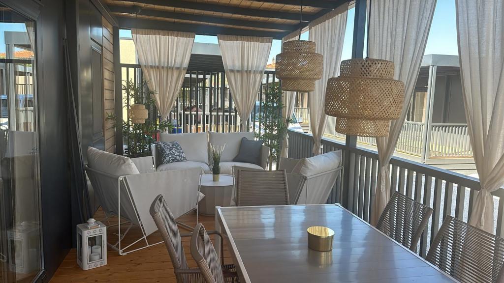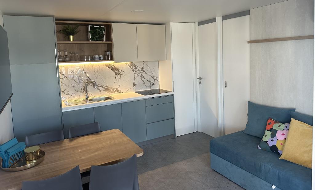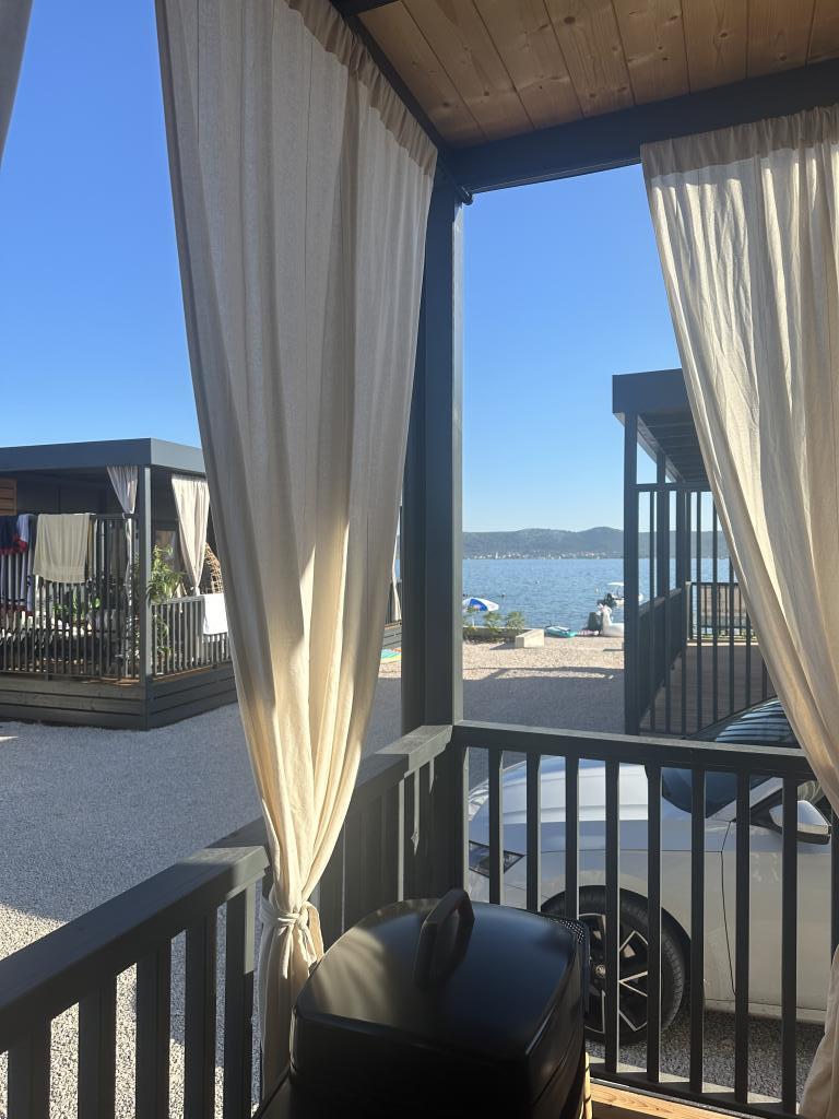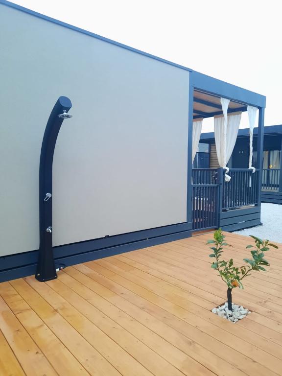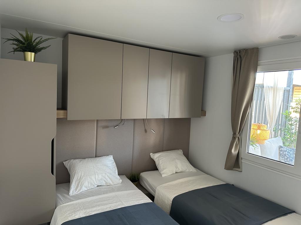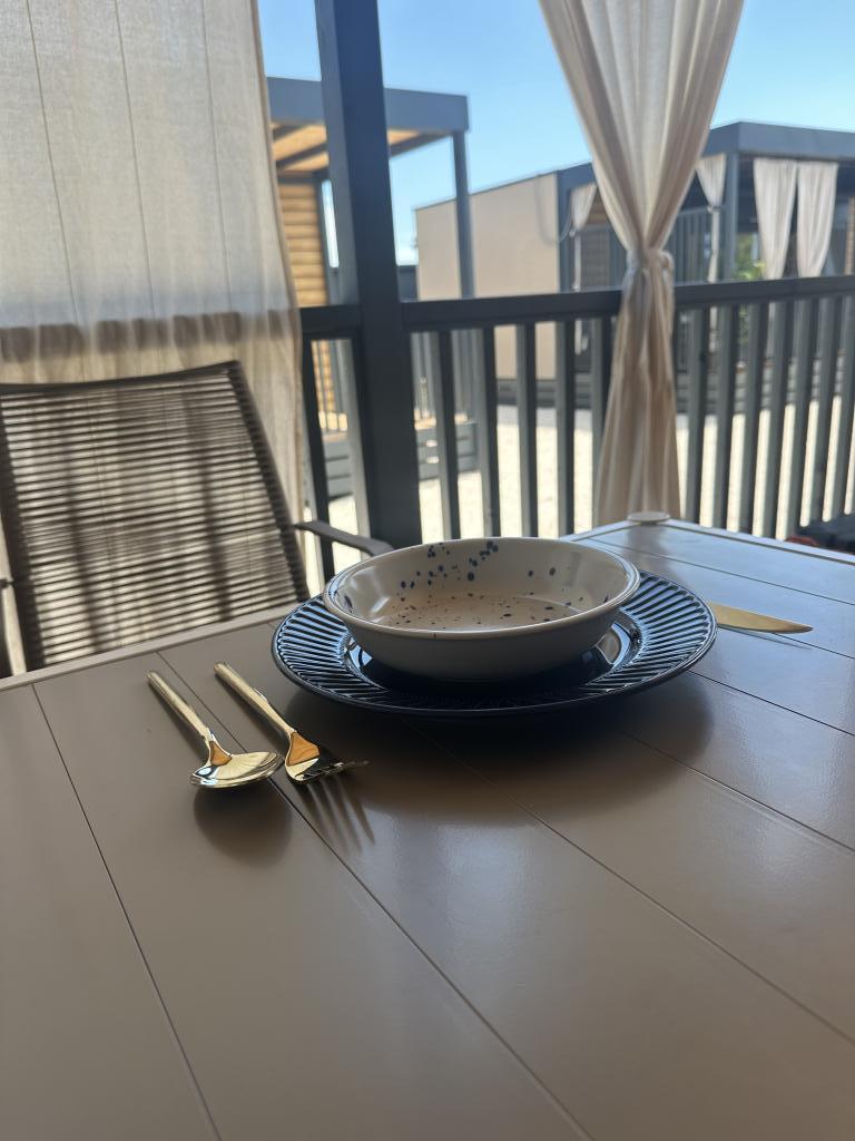 Plně a moderně vybavený mobilní dům se nachází v klidném malém kempu, jen pár kroků od pláže. S nádherným výhledem na moře si ho můžete vychutnat na terase na lehátkách nebo na lehátkách druhé terasy při lehkém vánku. Skládá se ze 2 ložnic, 2 koupelen, kuchyně, obývacího pokoje s rozkládací pohovkou. Zařízení se nachází 10 minut chůze podél pobřeží od centra, obchodů, pekáren, restaurací, kaváren. První restaurace je vzdálená 2 minuty chůze.
