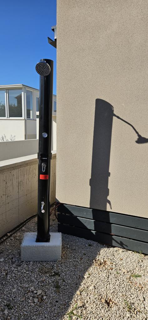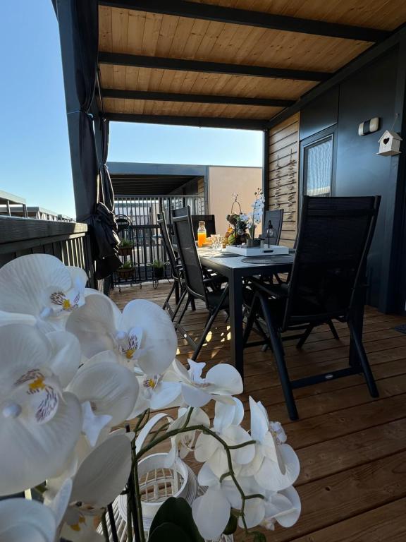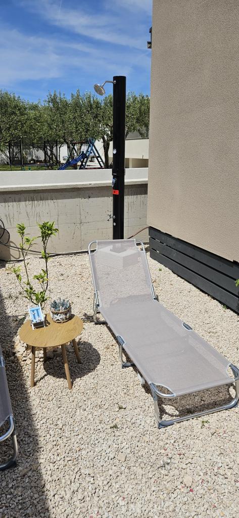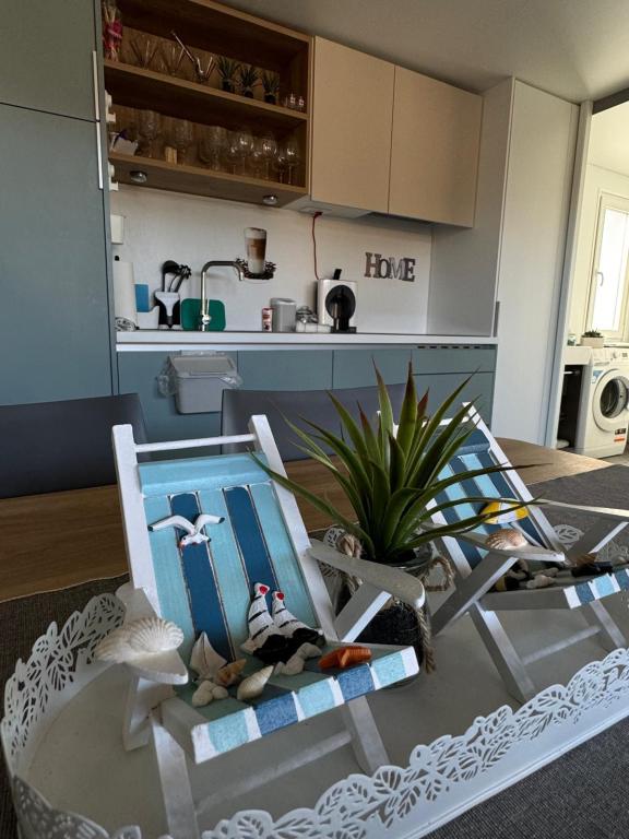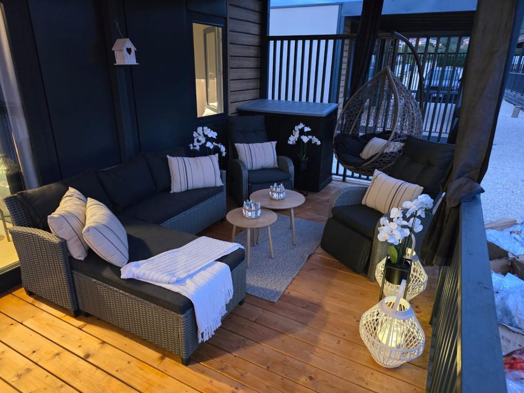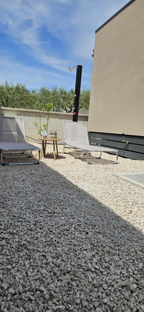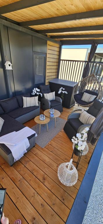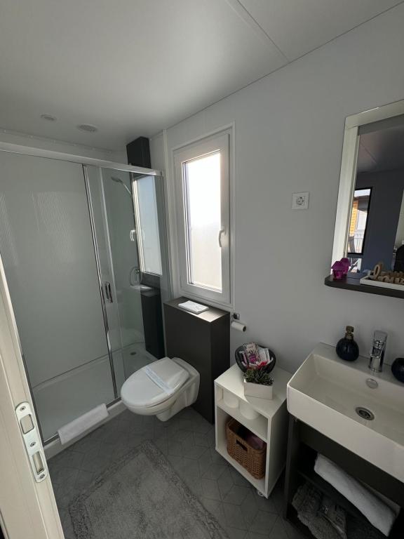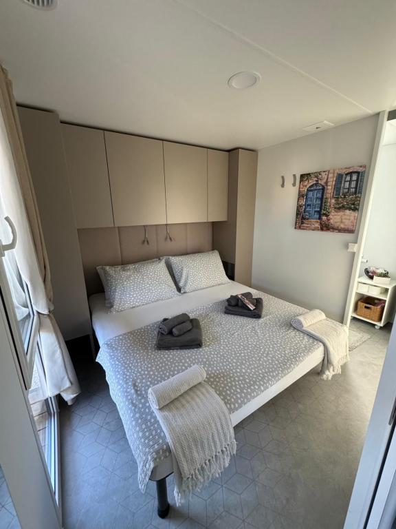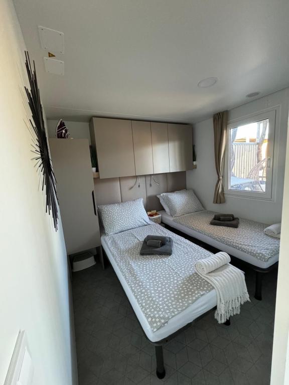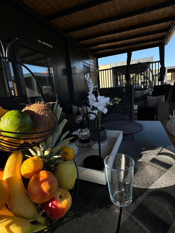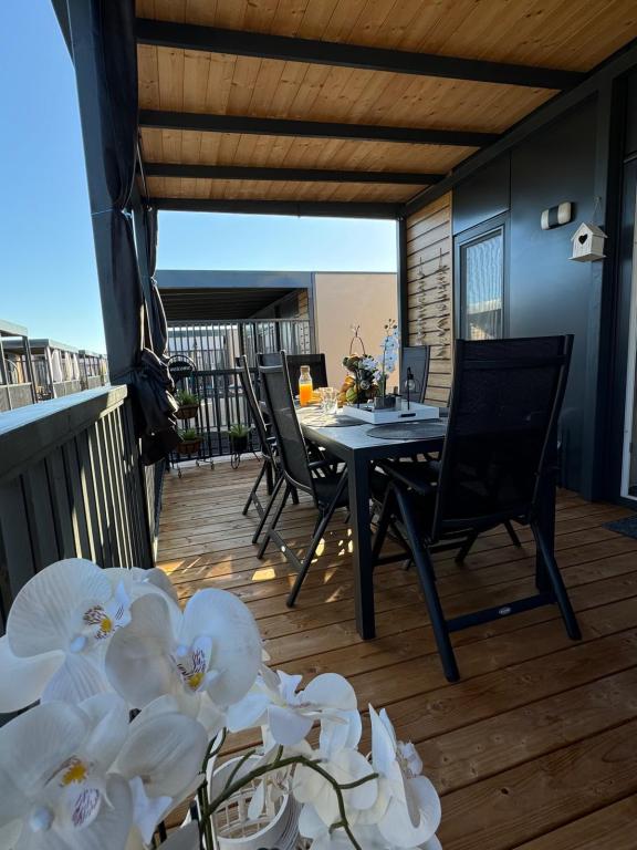 Mobilní dům se nachází v klidném kempu, pouhých 40 metrů od pláže, prostorná terasa s plynovým grilem a stropními ventilátory a dalším relaxačním zařízením, houpačkou a křesly. Dům je vybaven veškerým dalším vybavením a nádobím, které potřebujete k tomu, abyste si dovolenou užili jako doma. Vjezd vozidel do samotného kempu je zakázán, aby si děti mohly bezstarostně hrát, zatímco vy odpočíváte.