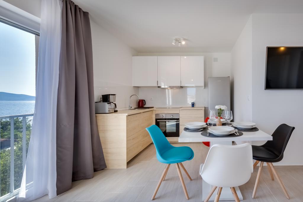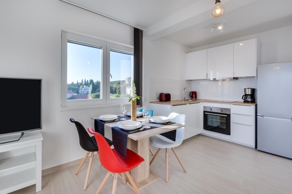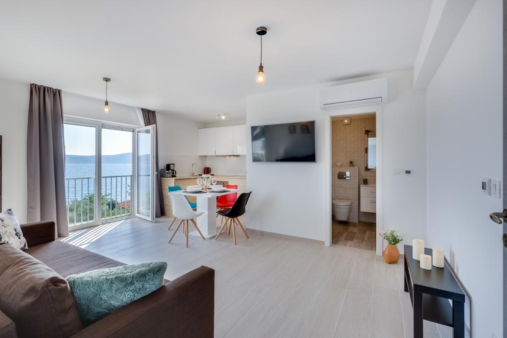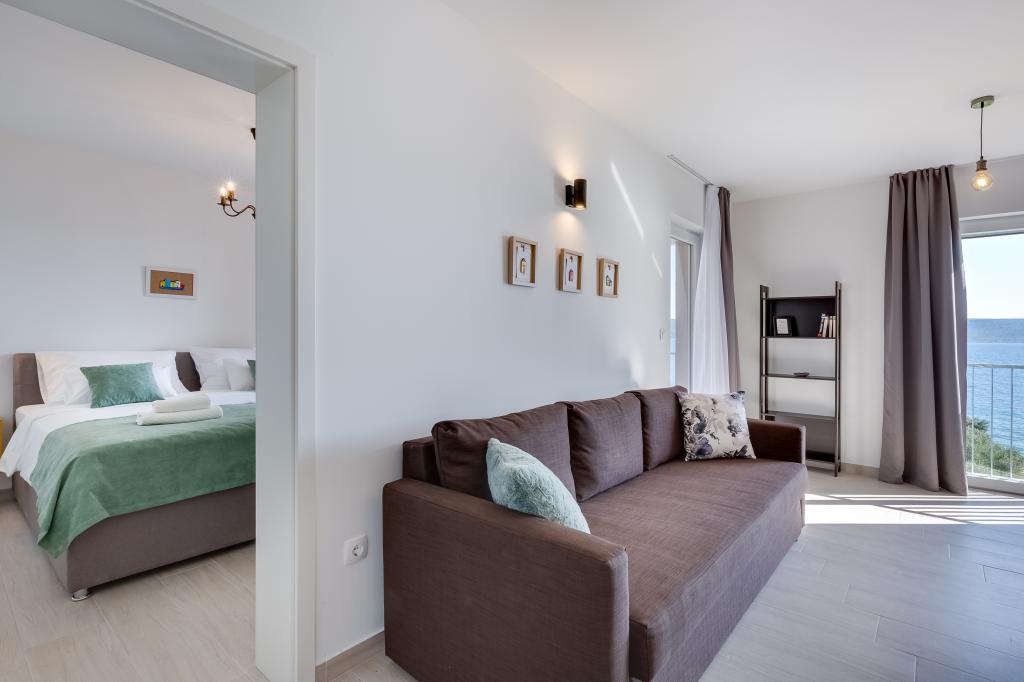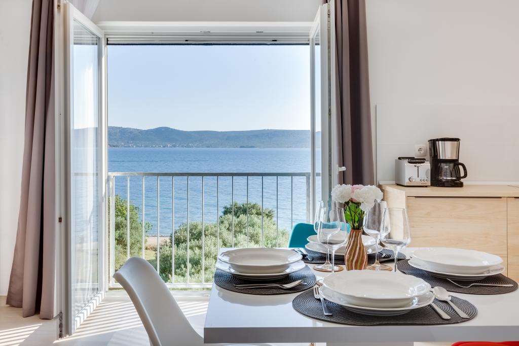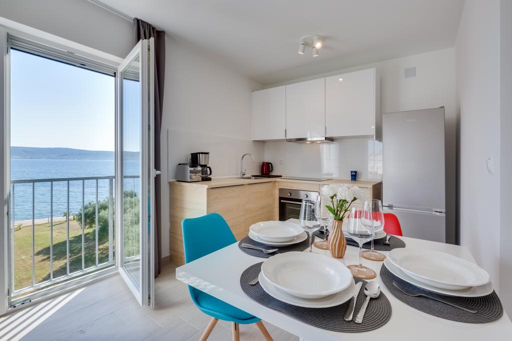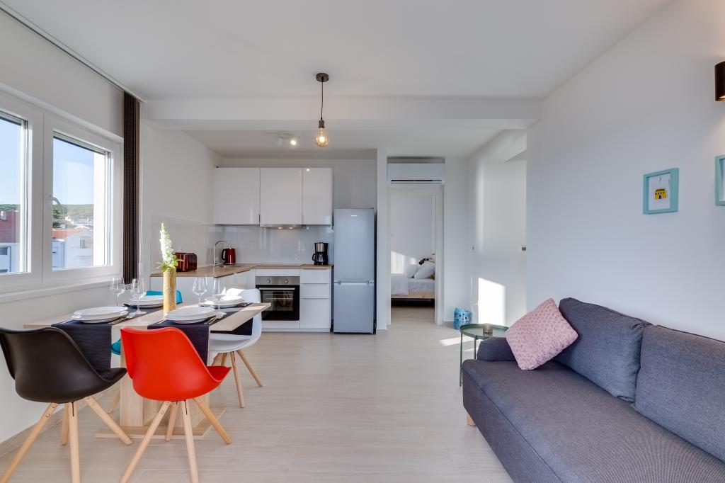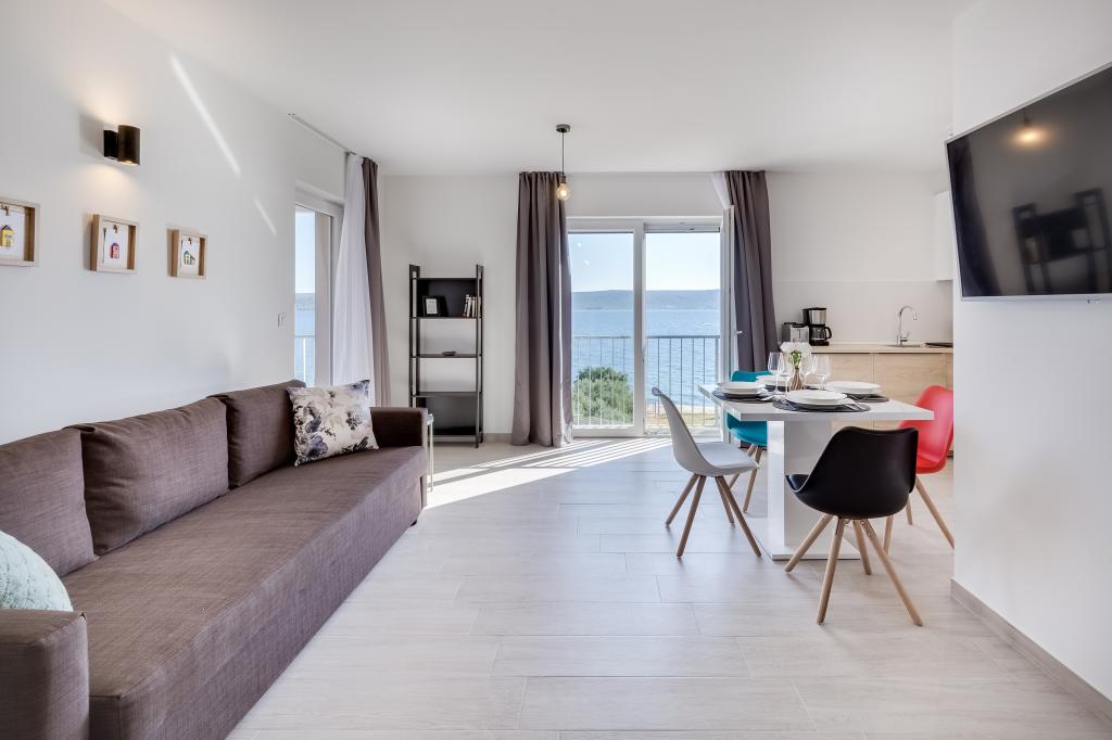 Nové apartmány ve výborné lokalitě přímo u moře. Od moře vás dělí jen dvůr plný olivovníků. Všechny apartmány mají terasu s krásným výhledem na moře. Mají plně vybavenou kuchyň (včetně indukčního sporáku, trouby, myčky, kávovaru), každý pokoj má moskytiéru a klimatizaci. Velká 50palcová TV. V koupelnách je sprchový kout. Užijte si koupání v moři a poté odpočinek na lehátkách ve stínu olivovníků. V noci se projděte podél pobřeží nebo navštivte okolní města (Zadar, Biograd, Šibenik...).