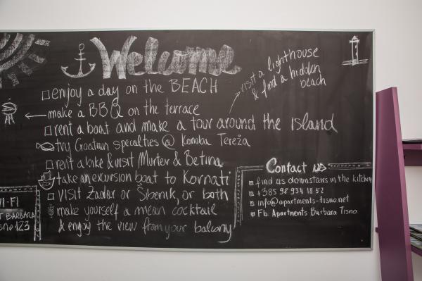 Hana Home - Apartmány Tisno V Tisnu je naše zařízení, kde je 9 vkusně zařízených apartmánů, které mohou ubytovat více než 30 lidí, Nacházíme se 30 m od moře a jen 400 metrů od pláže Jazine, Ze společných zařízení, které vám nabízíme velká terasa s grilem a parkování zdarma ve dvoře. Všechny apartmány mají výhled na moře, jsou vybaveny satelitní TV, klimatizací, internetem, plně vybavenou kuchyní s kávovarem / čajníkem. Centrum města Tisno je jen 10 minut chůze od Apartments Barbara Tisno. V okruhu 100 metrů jsou také 3 restaurace s chorvatskými a mezinárodními jídly. Chcete-li navštívit národní parky Krka, Kornati, Paklenica nebo přírodní parky Vranské jezero, Telaščica, chcete-li si užít historická města Zadar, Nin, Šibenik Trogir, Užijte si hudební festivaly konané v červenci - Hana Home - Apartmány Barbara Tisno jsou ideálním místem pro vaši dovolenou. . Čekáme na tebe!!!!!