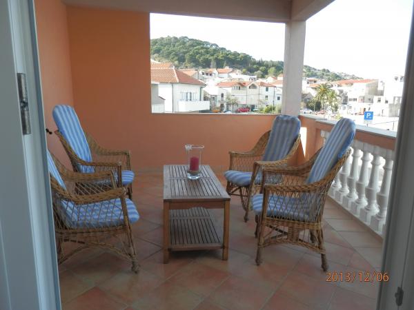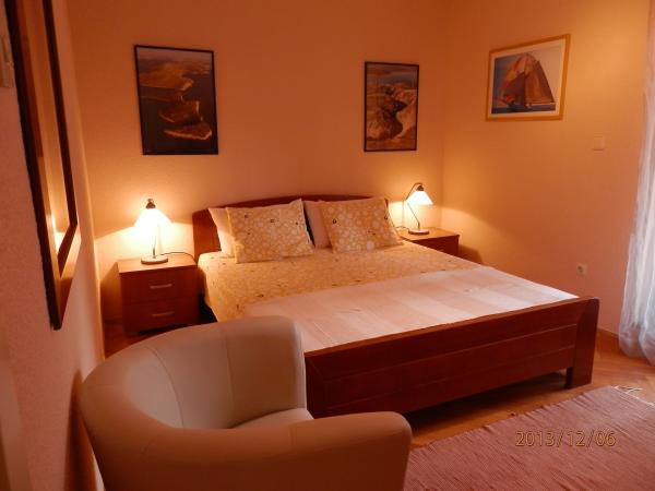 6 pěkně zařízené apartmány, která se nachází na klidném místě v Tisno na ostrově Murter, jen pár metrů od moře. Používáme veřejné parkoviště pro osobní automobily a mají kotvišť pro lodě v přední části domu. Pláž je 100 metrů od domu, do centra města, s veškerým komfortem, je 200 metrů od hotelu. Tisno se nachází v blízkosti dvou národních parků, Kornati a Krka. Apartmány jsou vybaveny TV, Wi-Fi připojení na internet, satelitní TV, klimatizací a všechny ostatní věci, potřebné příjemnou dovolenou. Byt je nekuřácký, kromě na terase.