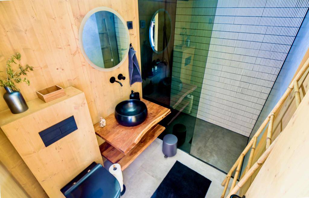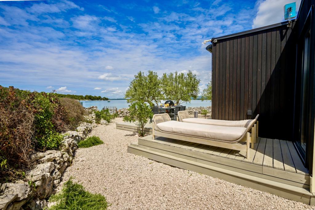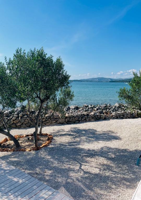 Mobilní dům je jen pár kroků od moře. Moderní interiér apartmánu se snoubí s typickou Dalmáciou. Obklopen bílými oblázky a zelenými olivovníky a před ním je jen nekonečná modř. Moře, slunce a vítr vytvářejí nepopsatelnou hru, která potěší všechny smysly. Ať už spíte v jedné ze dvou ložnic, můžete si ráno užívat modř moře a záři slunce. A z plně vybavené kuchyně se vším potřebným (včetně myčky nádobí a mrazáku) a prostorného jídelního stolu se nabízí nepopsatelný výhled na terasu a všechna kouzla, která slunce a moře nabízí. Ať už si připravujete jídlo v kuchyni nebo grilujete na terase, máte zaručen naprostý klid a soukromí. Cílem každé dovolené je nechat za sebou všední den a rutinu, a přesně to naše zařízení nabízí. Přestože je obklopen 8 podobnými budovami, budete si užívat naprosté soukromí a klid, protože se o vás všichni postarají. Jediným limitem před vámi je nebe a moře.