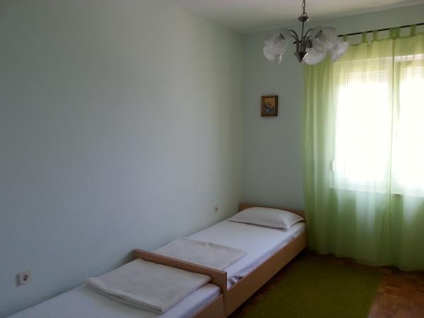 Apartmán, který jsme si pronajali, můžu jen pochválit, byl bezvadně čistý. Kromě dvou ložnic je tam opravdu velký obývací pokoj s rozkládací pohovkou a nová klimatizace (velmi kvalitní). Tyto fotky jsou staré, protože teď tam zařídili obrovskou terasu s východem z obývacího pokoje, balkon z ložnice zůstal. Terasa má stín celý den (kromě těch časných rán od 6:00 do 7:00). Pláž je přes zahradu. Vyzkoušeli jsme mnoho apartmánů. Tento je nejlepší, co se týče lokality, čistoty a ceny. Děkujeme nájemcům, jako jsou paní Irena a pan Ivica Lukačić.