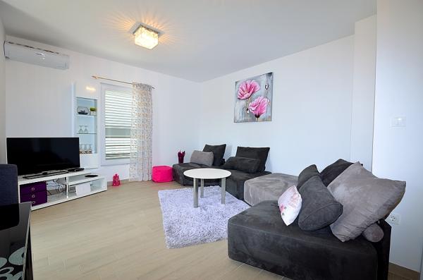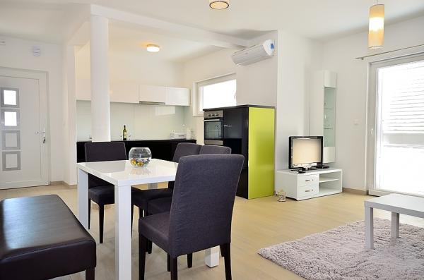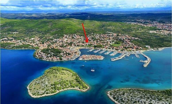 Tribunj- apartmán se dvěma ložnicemi lůžkem, WC, koupelna WC, kuchyň a obývací pokoj, terasa, parkování, klimatizace, 300 m od pláže, 200 m od centra, 100 m od obchodů a restaurací ,